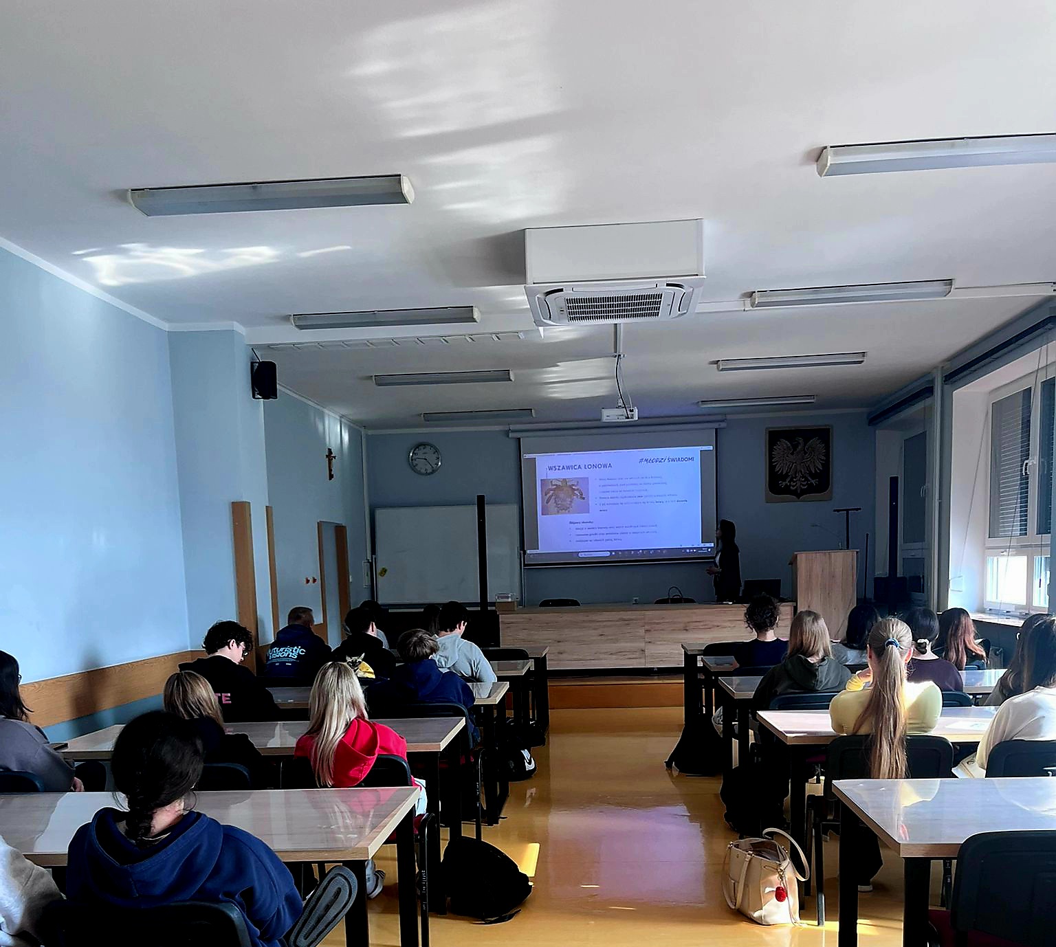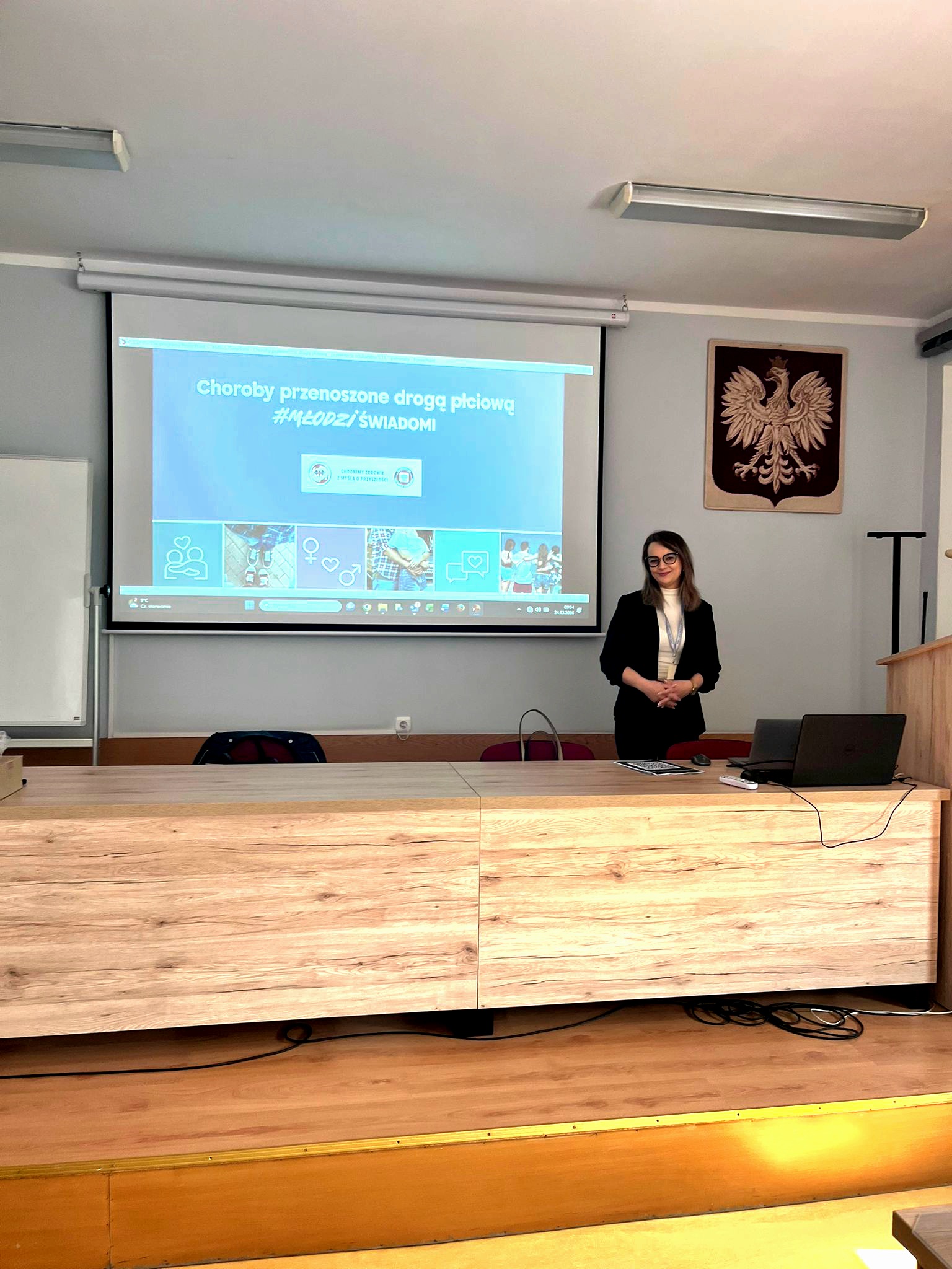 Przedstawiciele Powiatowej Stacji Sanitarno-Epidemiologicznej w Jędrzejowie spotkali się z uczniami w Zespole Szkół nr 1 im ks. Stanisława Konarskiego w Jędrzejowie w ramach realizacji programu #MłodziŚwiadomi. Celem inicjatywy było zwiększenie wiedzy młodzieży na temat chorób przenoszonych drogą płciową oraz kształtowanie odpowiedzialnych postaw prozdrowotnych. Podczas spotkania omówiono najczęstsze choroby zakaźne, ich objawy, drogi transmisji oraz konsekwencje zdrowotne wynikające z braku leczenia. Szczególny nacisk położono na profilaktykę, w tym znaczenie edukacji seksualnej, regularnych badań oraz świadomego podejmowania decyzji dotyczących zdrowia. Uczniowie mieli również możliwość zadawania pytań i rozwiewania wątpliwości w atmosferze sprzyjającej otwartej dyskusji.