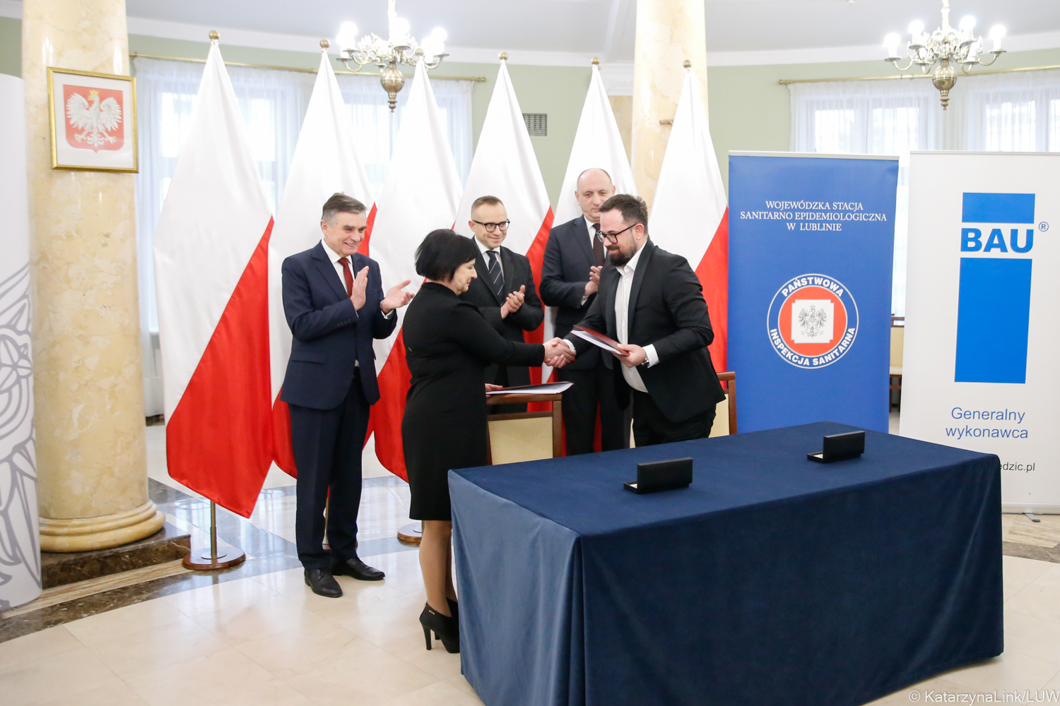 Jak pokazała pandemia, funkcjonowanie inspekcji sanitarnych jest niezwykle ważne w zakresie bezpieczeństwa zdrowia publicznego. Istotne jest to, by inspekcje sanitarne posiadały podstawowe narzędzia do walki z podobnymi zdarzeniami, a takim narzędziem jest to laboratorium, które pozwoli zabezpieczyć region południowo-wschodni. Bardzo się cieszę, że możemy rozpocząć dzisiaj proces budowy tego laboratorium poprzez podpisanie umowy z wykonawcą. Dziękuję Panu wojewodzie za wsparcie w organizacji tego projektu – podkreślał Krzysztof Saczka, Główny Inspektor Sanitarny wz. podczas konferencji związanej z podpisaniem umowy na budowę lubelskiego laboratorium.