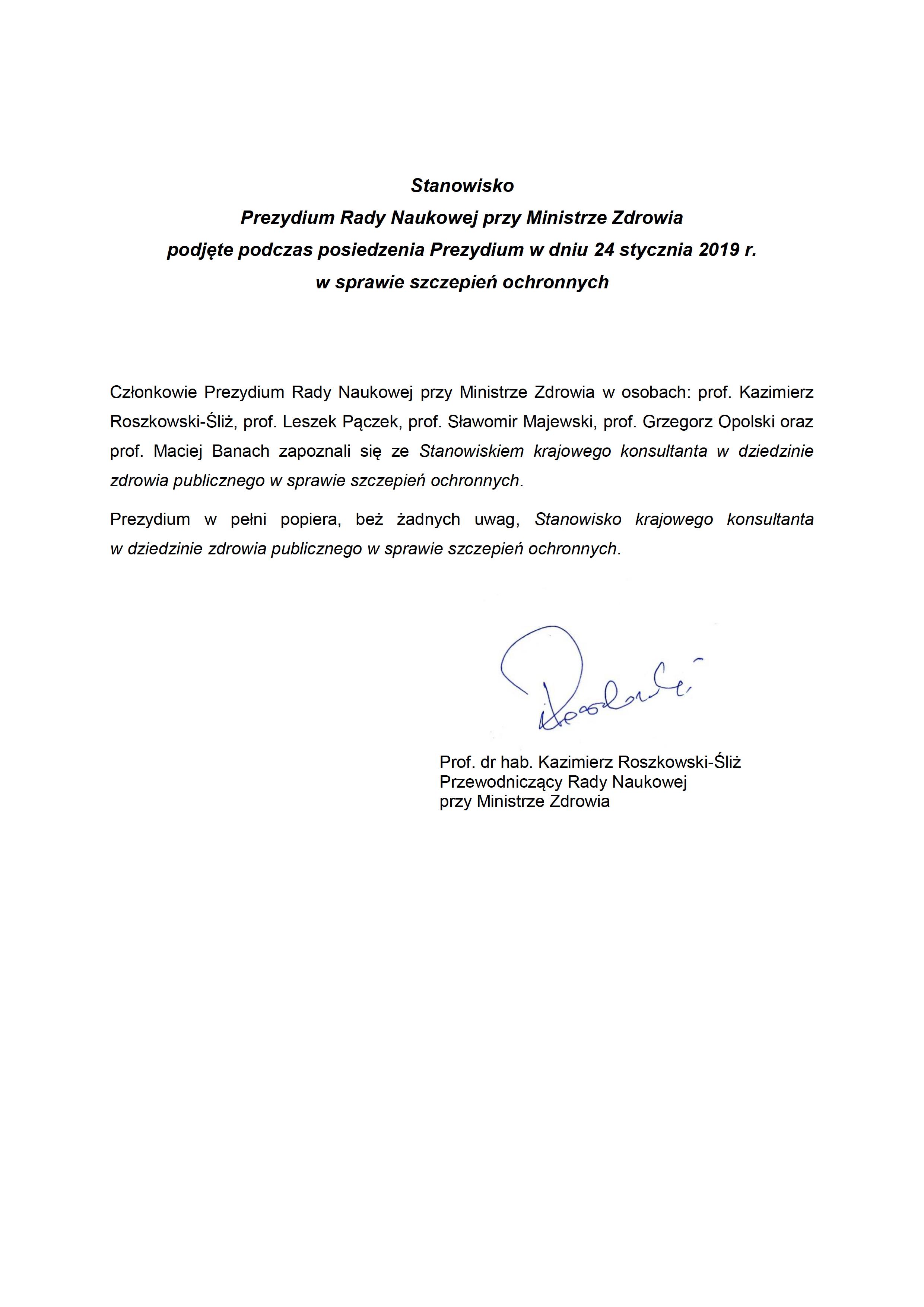Stanowisko Krajowego Konsultanta w dziedzinie zdrowia publicznego w sprawie obowiązku szczepień poparły takie instytucje jak: