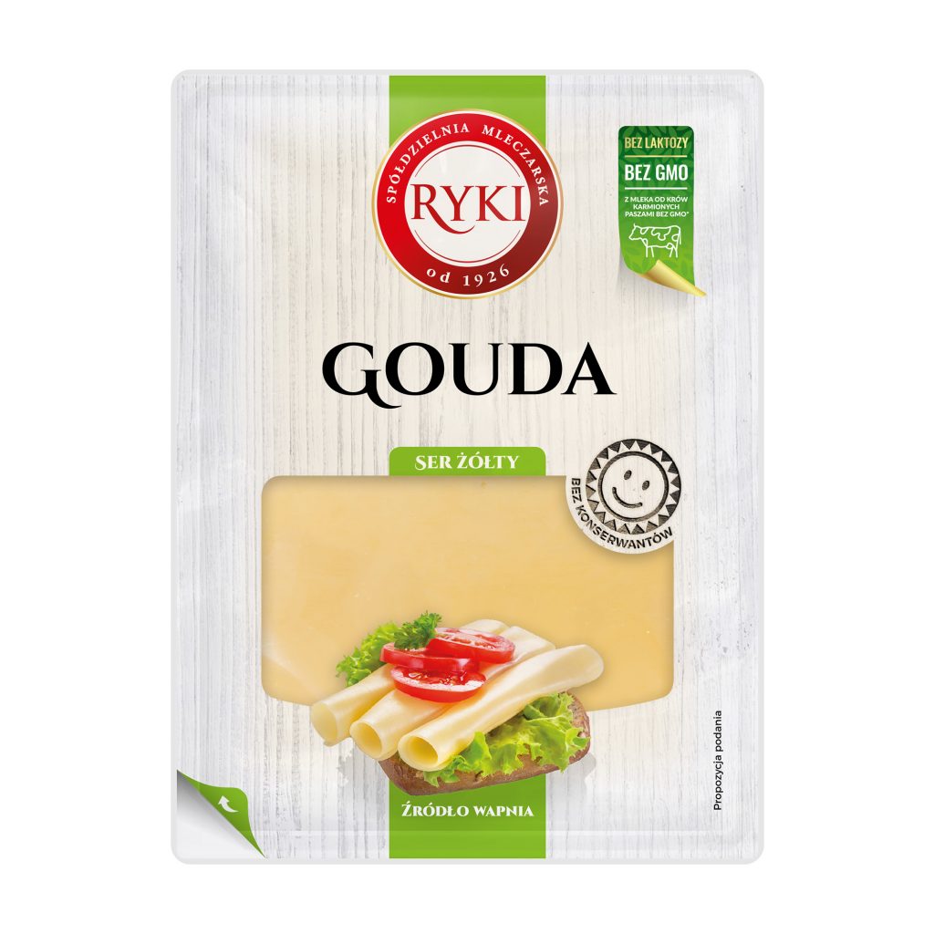 Produkt – Ser żółty Gouda marki Ryki, 135 g, plastry