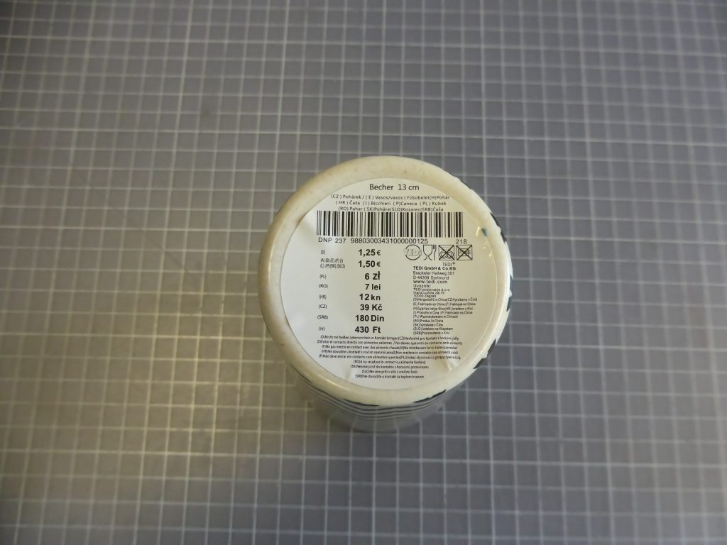 W próbkach produktu (kubek) badanego w Niemczech, stwierdzono podwyższone poziomy migracji formaldehydu i melaminy z naczyń o widocznym w komunikacie wzorze.