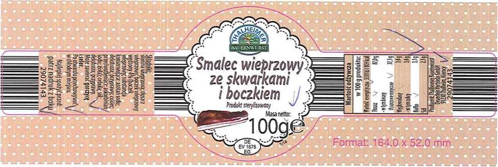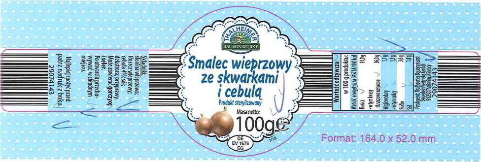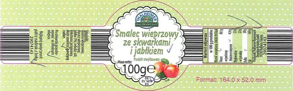 Produkt – Smalec „Thalheimer Bauernwurst” 100 g, smak: klasyczny, jabłkowy, cebulowy, ziołowy, bekonowy