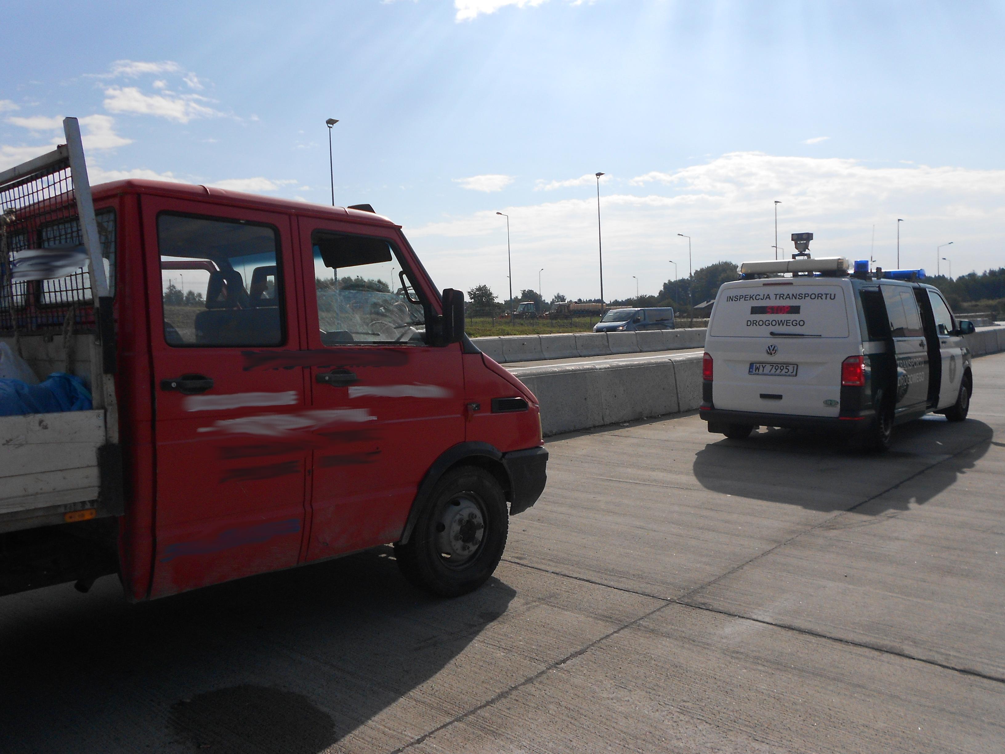 Mężczyzna na zakazie sądowym prowadził niesprawną ciężarówkę. Pojazd miał uszkodzone opony. Brakowało także obowiązkowych elementów wyposażenia m.in. gaśnicy. Zarówno samochód, jak i przyczepa nie posiadały ważnych badań technicznych. Inspektorzy zatrzymali dowody rejestracyjne pojazdów i zakazali dalszej jazdy. Ponadto, w związku z naruszeniem obowiązku uiszczenia opłaty elektronicznej, ITD wszczęła postępowanie administracyjne wobec właściciela pojazdu.