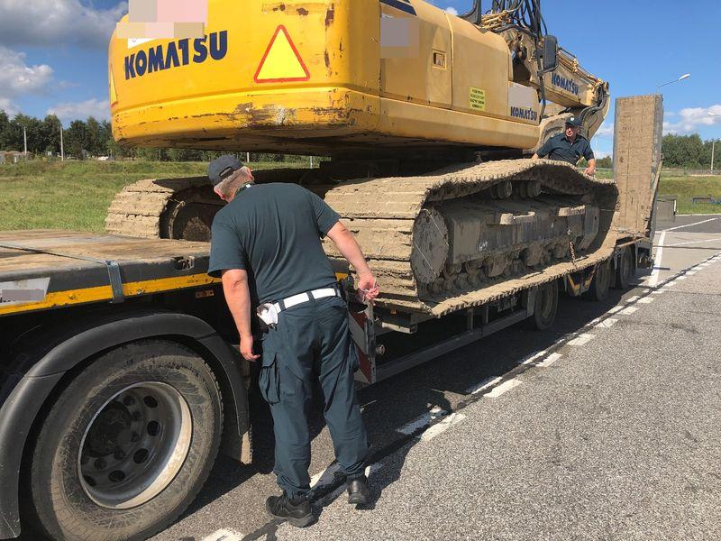 Inspektorzy sprawdzili również prawidłowość zabezpieczenia przewożonego ładunku. Jak się okazało, jedyną formą zabezpieczenia 35-tonowej koparki przewożonej trasą S7, był łańcuch, którego wytrzymałość wynosiła zaledwie 5 ton. Pod ładunkiem nie było mat antypoślizgowych, brakowało również podciągów łańcuchowych przeznaczonych do tego rodzaju przewozów. Pojazd ponadnormatywny został tez niewłaściwie oznakowany.