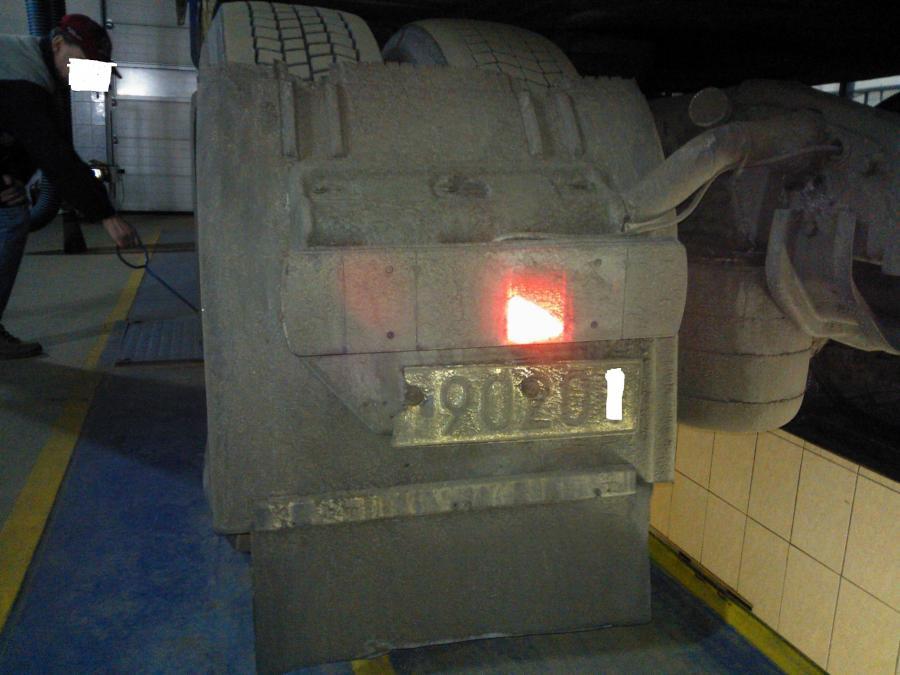 Ciężarówka była pilotowana przez inspektorów na stację diagnostyczną, gdzie uprawniony diagnosta dokonał szczegółowego badania układu hamulcowego. Wynik był zatrważający. Na sześć kół w naczepie tylko jedno miało sprawne hamulce. Pozostałe pięć kół w ogóle nie hamowało. Dalsza diagnostyka wykazała również brak hamulców w ciągniku siodłowym z prawej strony osi napędowej oraz uszkodzenie amortyzatora z lewej strony na przedniej osi. Dodatkowo ciągnik siodłowy z tyłu oznakowany był zaledwie połową tablicy rejestracyjnej. Druga połowa po prostu odpadła.