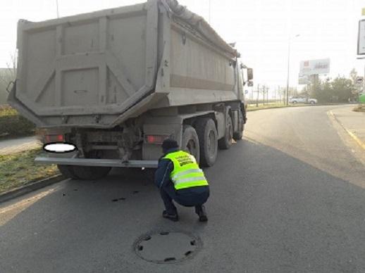 Kolejne czynności wykonane przez inspektorów podczas kontroli wykazały zły stan techniczny pojazdu i liczne naruszenia przepisów ustawy o transporcie drogowym. Wywrotka m.in. poruszała się na bardzo mocno zniszczonych oponach, co stwarzało bezpośrednie zagrożenie dla ruchu drogowego.