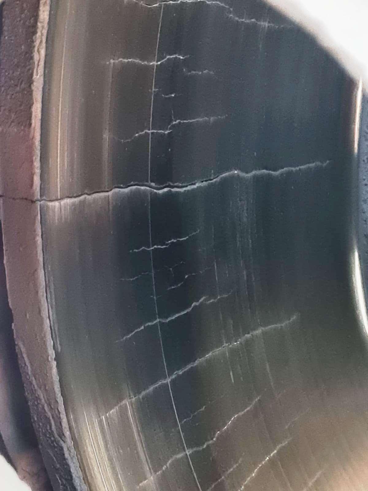 To nie była jedyna, poważna nieprawidłowość ujawniona w trakcie tej kontroli. Stan techniczny ciężarówki również pozostawiał wiele do życzenia. Dwie tarcze hamulcowe na pierwszej osi ciągnika siodłowego były mocno popękane na całej szerokości.
