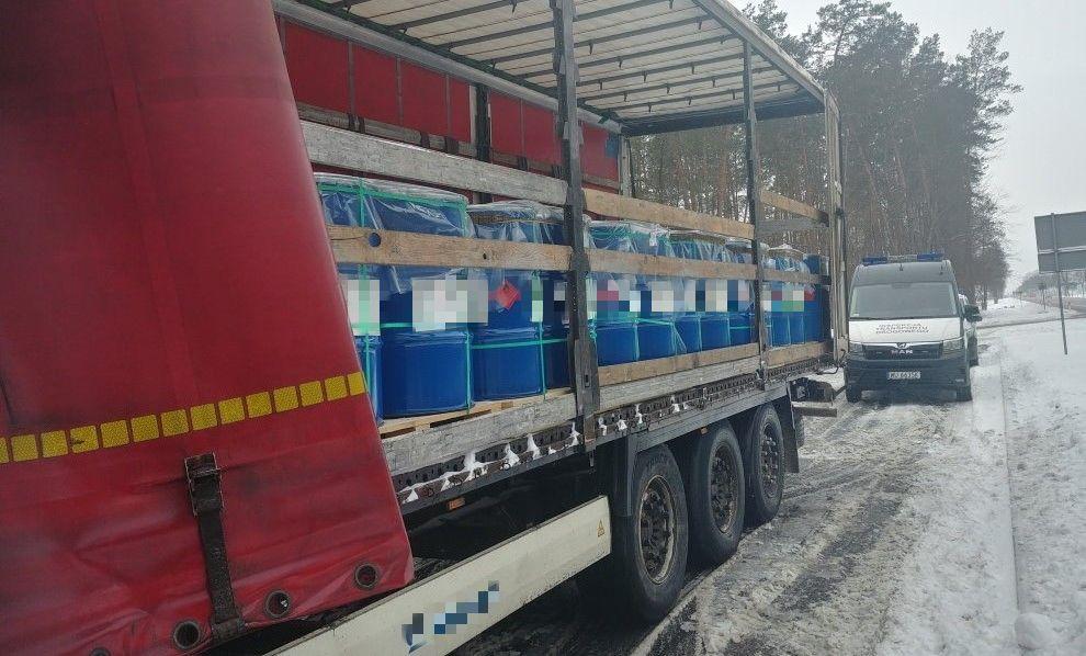 Ciężarówkę przewożącą 21 ton łatwopalnej farby zatrzymano do kontroli we wtorek (9 lutego) na krajowej "dwójce" w miejscowości Woroniec w pobliżu Białej Podlaskiej. Przewożony ładunek nie został zabezpieczony przed zmianą miejsca położenia podczas jazdy.