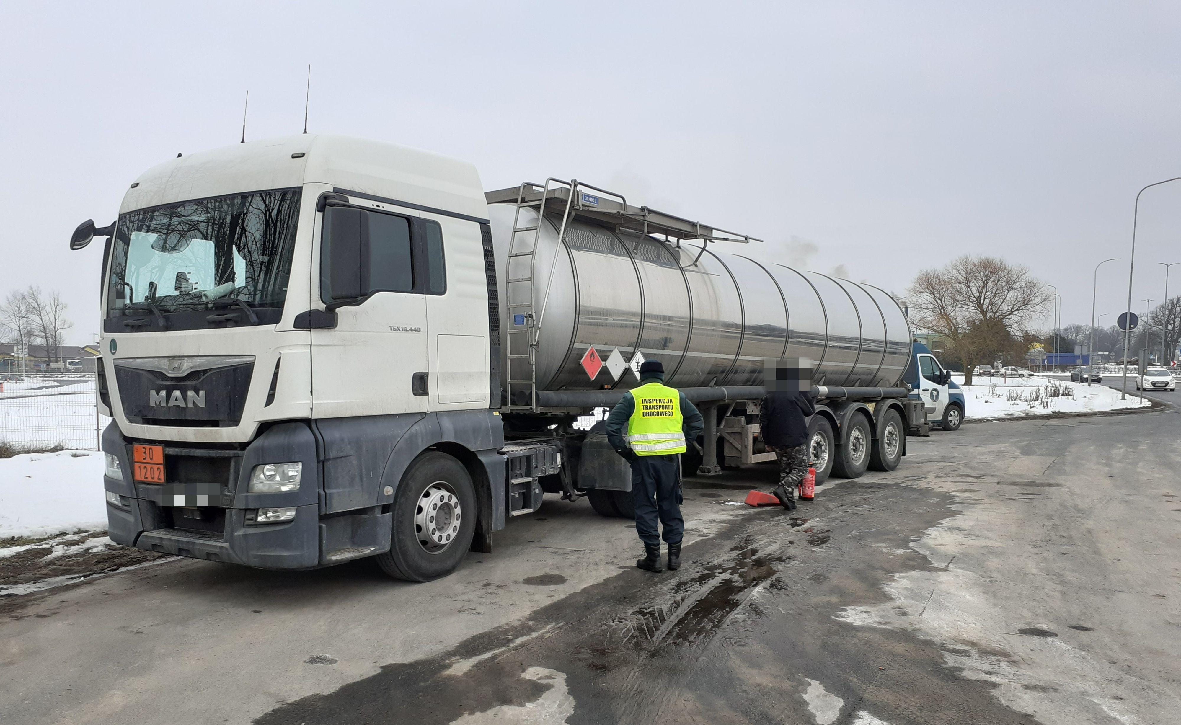 Kierowca mógł kontynuować transport paliwa po wyposażeniu ciężarówki w gaśnice z ważnym przeglądem. Wobec przewoźnika wszczęto postępowanie administracyjne. Za stwierdzone naruszenie przedsiębiorcy grozi teraz kara pieniężna.