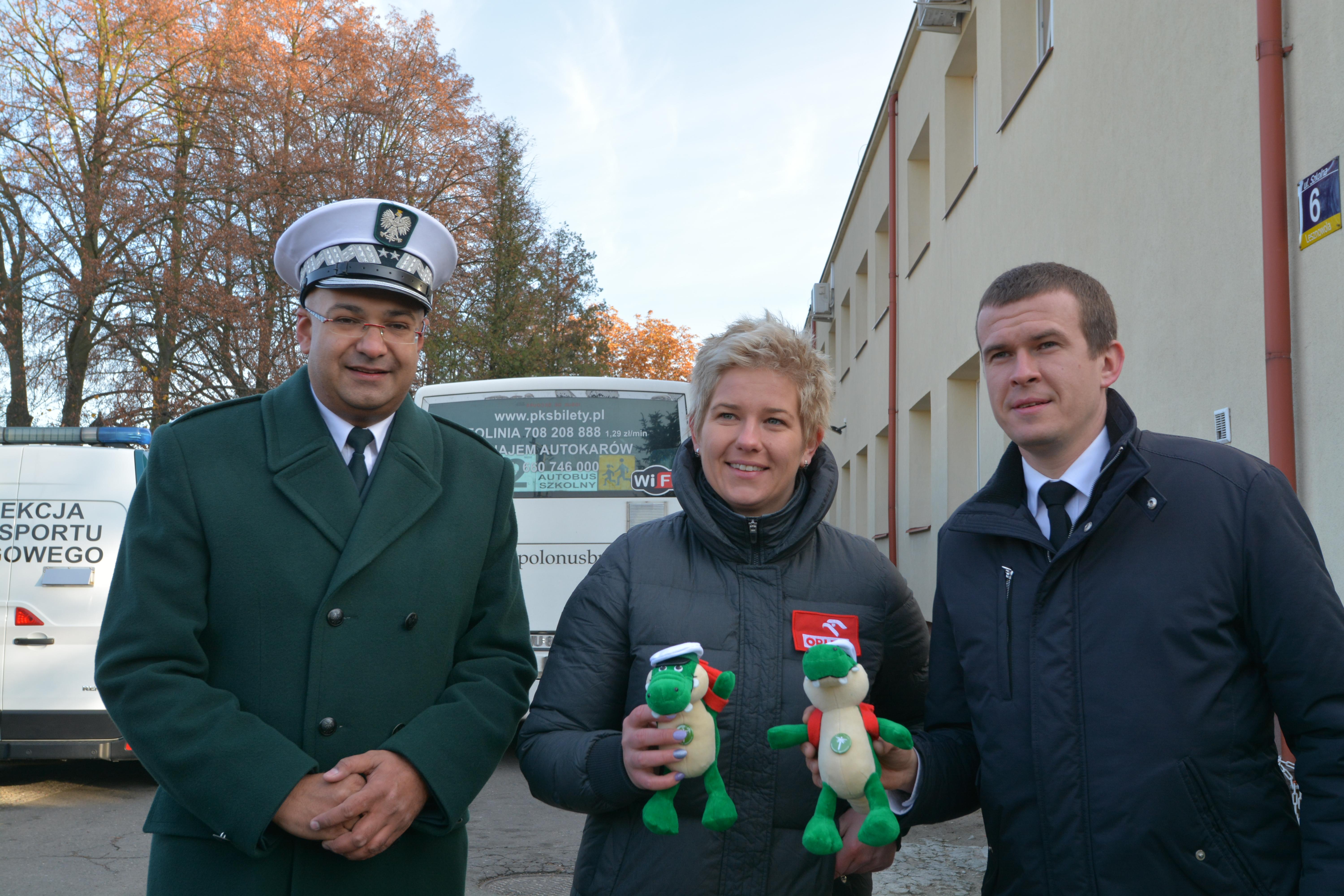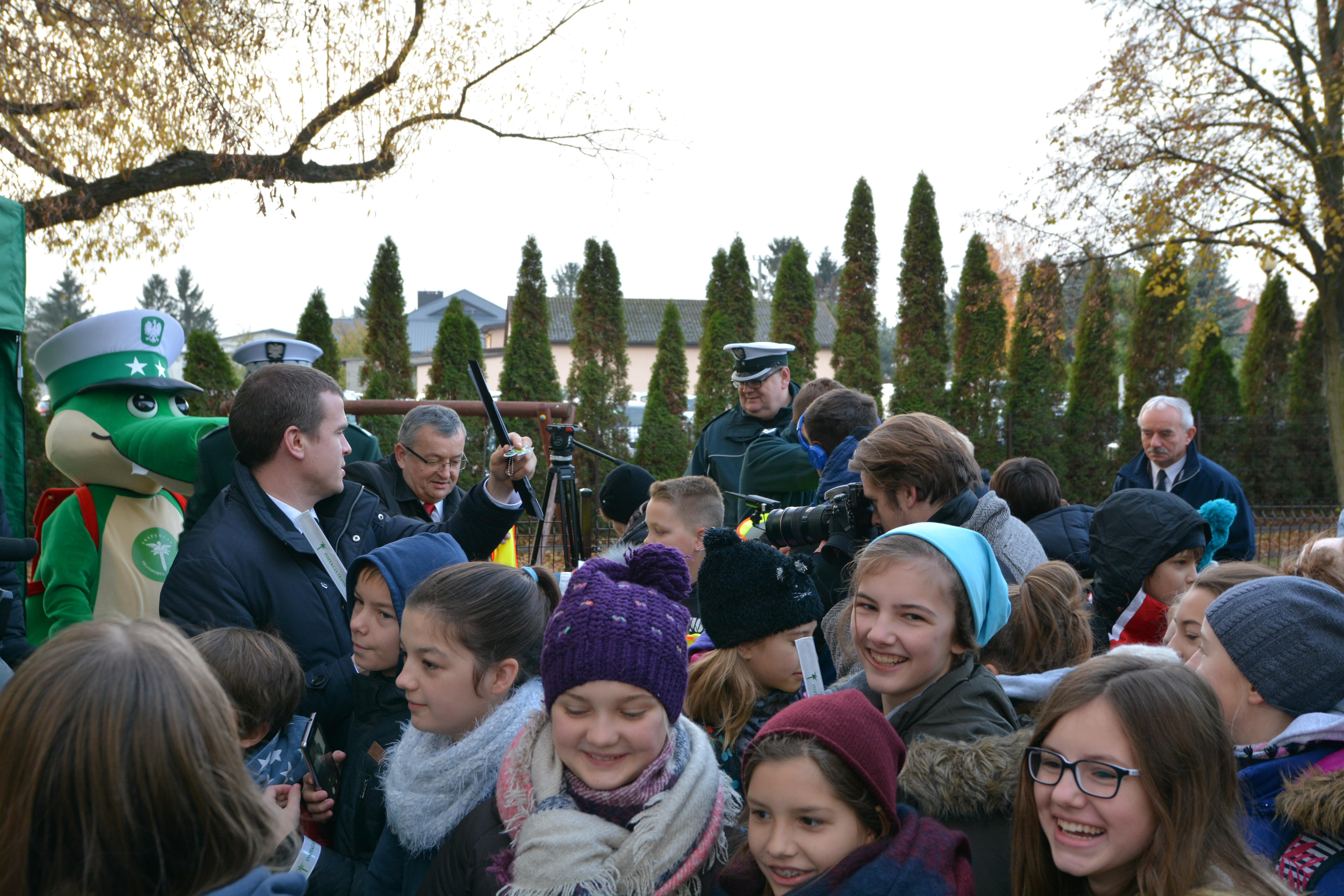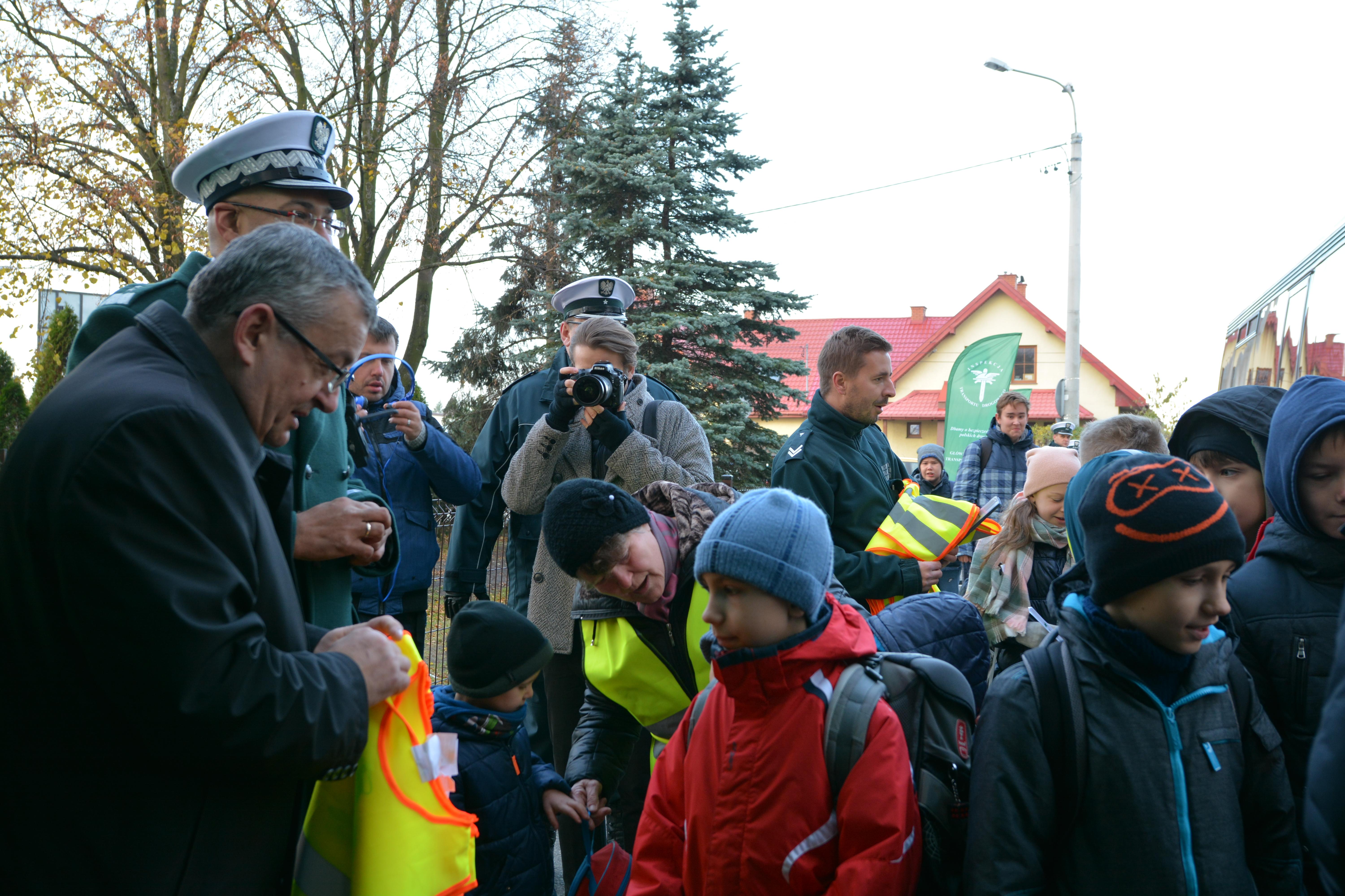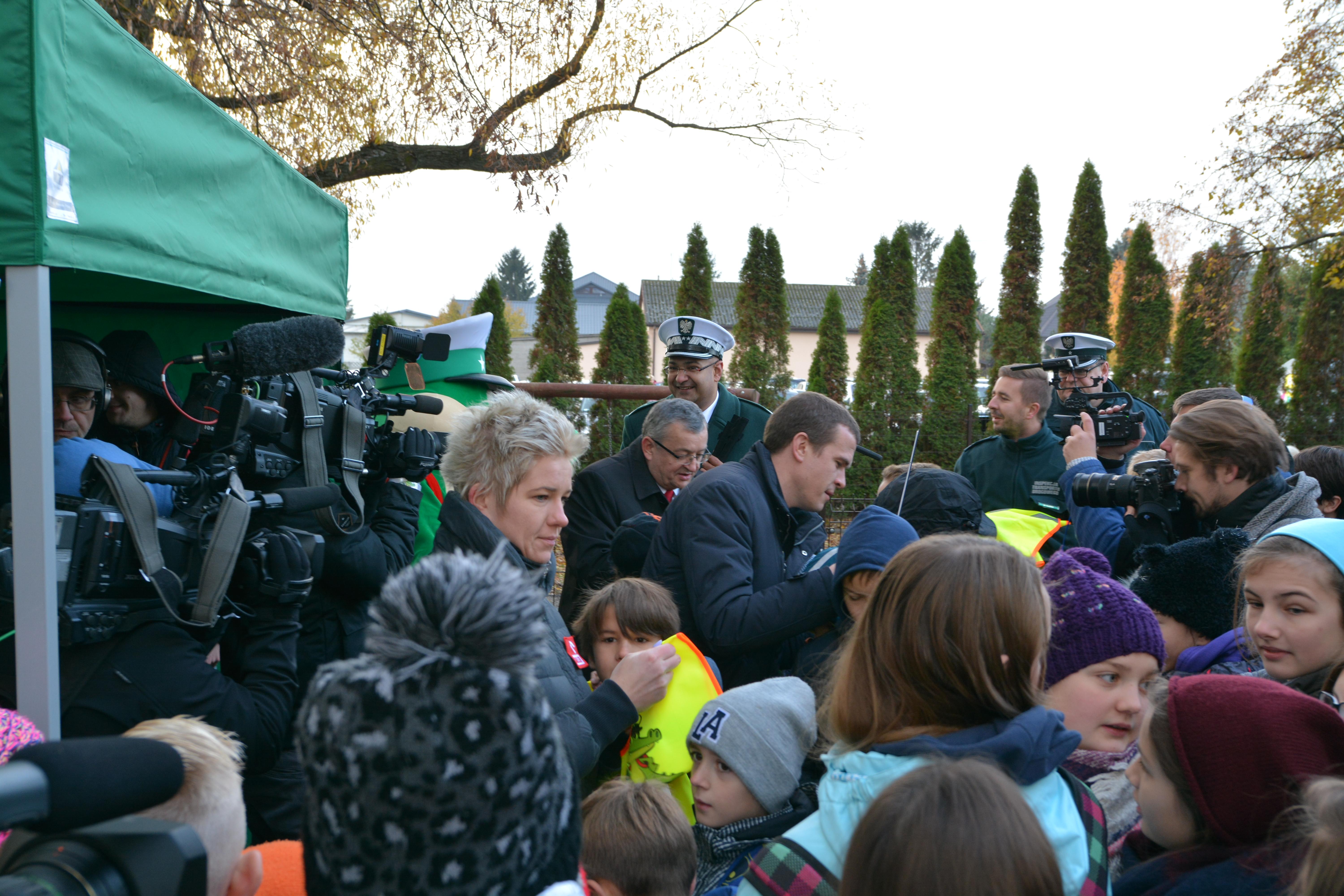 Minister Adamczyk, minister Bańka, szef GITD oraz mistrzyni olimpijska rozdawali również dzieciom odblaski, które poprawiają ich widoczność na drodze. "Wzorowi" kierowcy otrzymali w nagrodę maskotkę ITD - pluszowego krokodyla.
