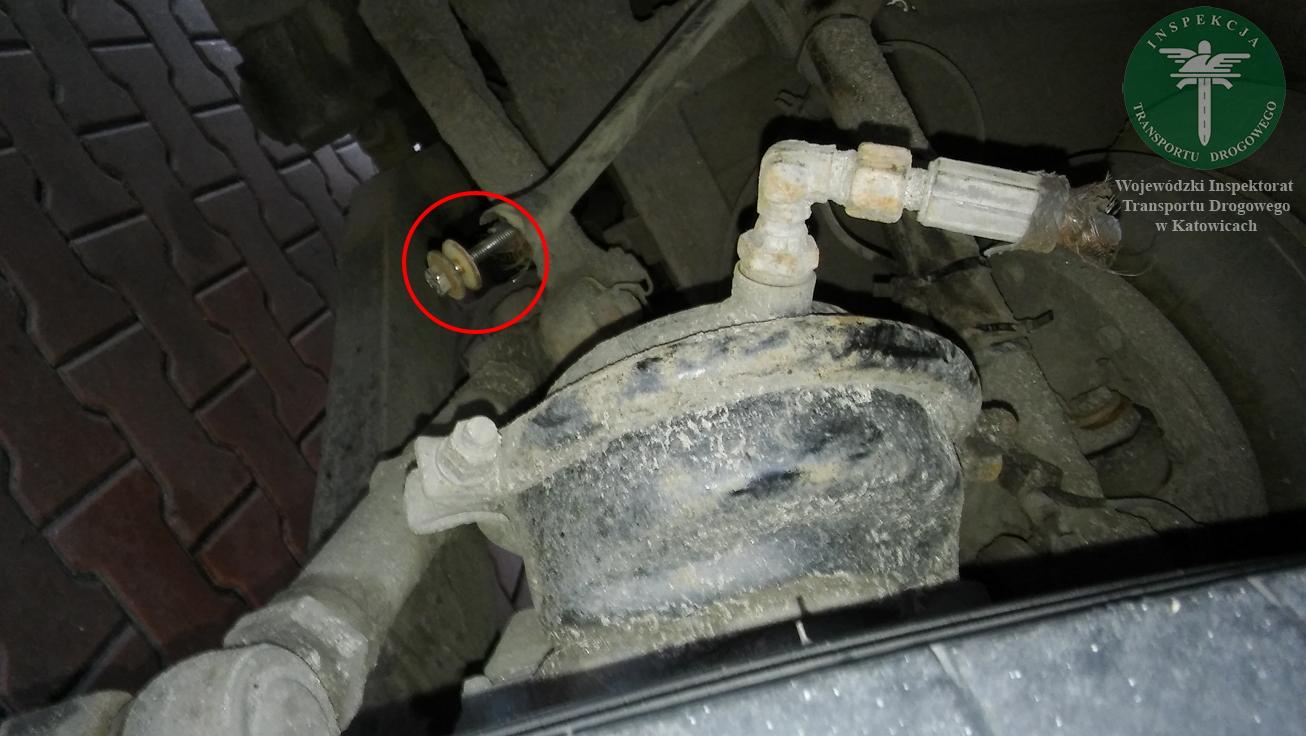 W trakcie kontroli stanu technicznego pojazdu, zauważono, iż przewód hamulcowy doprowadzający powietrze do hamulca z lewej strony na osi kierowanej pojazdu jest całkowicie przerwany, a kierowca zaślepił go… śrubą! Mimo, iż kierowca doskonale wiedział o niesprawności, zdecydował się na przewóz dzieci, a na domiar złego, przez pewien odcinek drogi, jechał z prędkością przekraczającą 100 km/h, w miejscu gdzie dopuszczalna dla niego prędkość wynosiła maksymalnie 80 km/h.