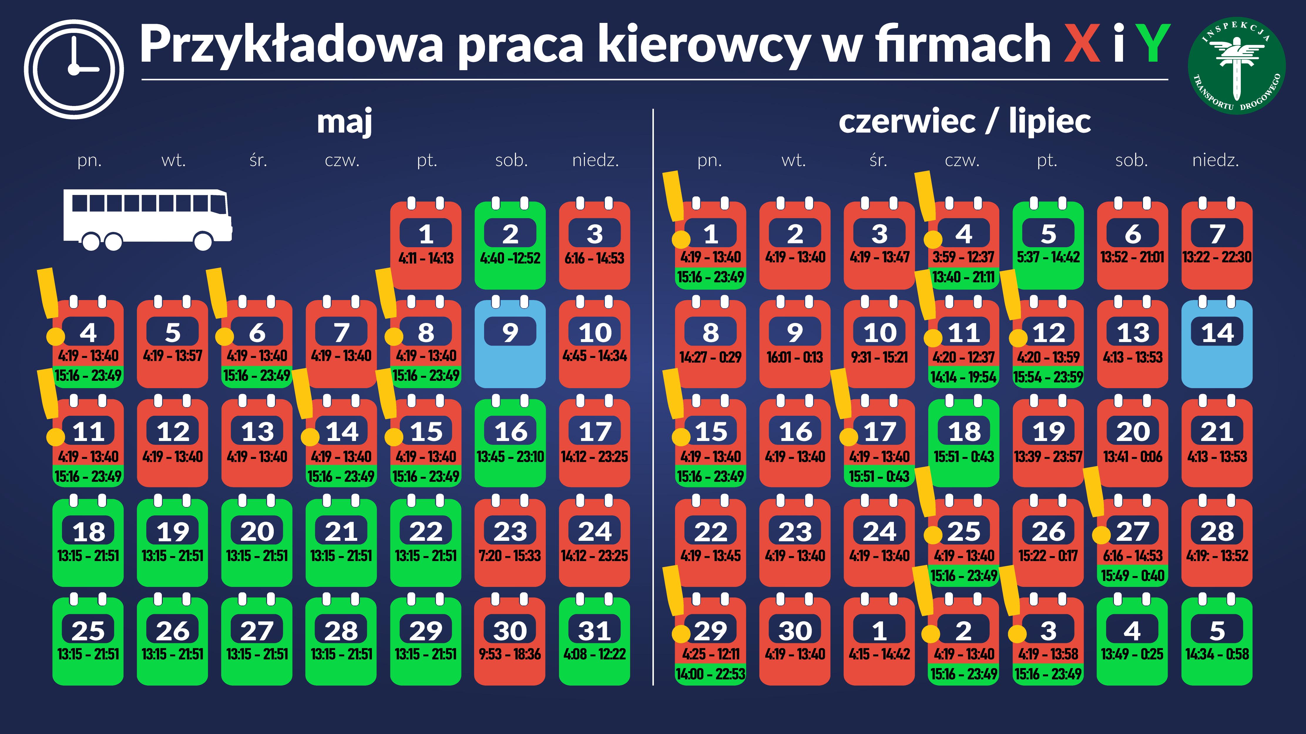 Przez ponad 2 miesiące, kierowca który woził warszawiaków pracując równocześnie dla dwóch przewoźników, miał tylko 2 dni wolne od pracy. W tym czasie 44 razy naruszył normy czasu pracy. Kolejny kierowca, który również pracował dla dwóch przewoźników, w trakcie 2 miesięcy pracy, 63 razy złamał przepisy przekraczając dozwolony czas prowadzenia pojazdów lub skracając wymagany okres odpoczynku.