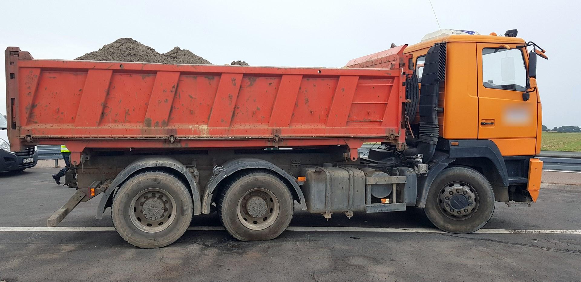 Patrol wielkopolskiej inspekcji z Leszna zatrzymał do kontroli wywrotkę, z której osypywał się wieziony beton. Dodatkowo pojawiły się też podejrzenia o przeładowanie ciężarówki. Została więc skierowana na pobliski punkt wagowy.