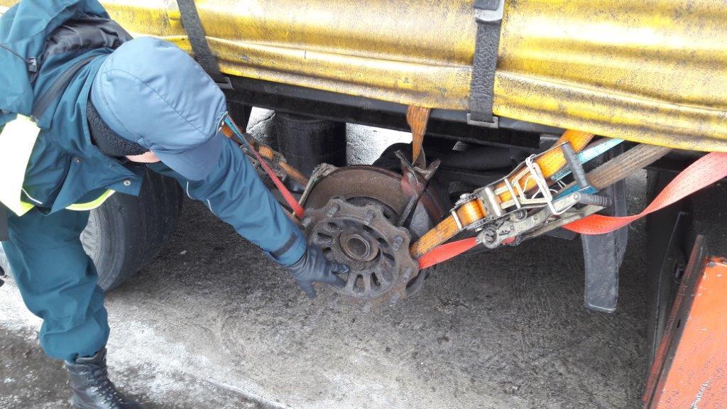 Szeregu naruszeń dopuścił się kierowca zatrzymany do kontroli przez inspektorów WITD we Wrocławiu. Zmęczony prowadził pojazd z nieodpowiednio zabezpieczonym ładunkiem, używając magnesu i … bez koła.