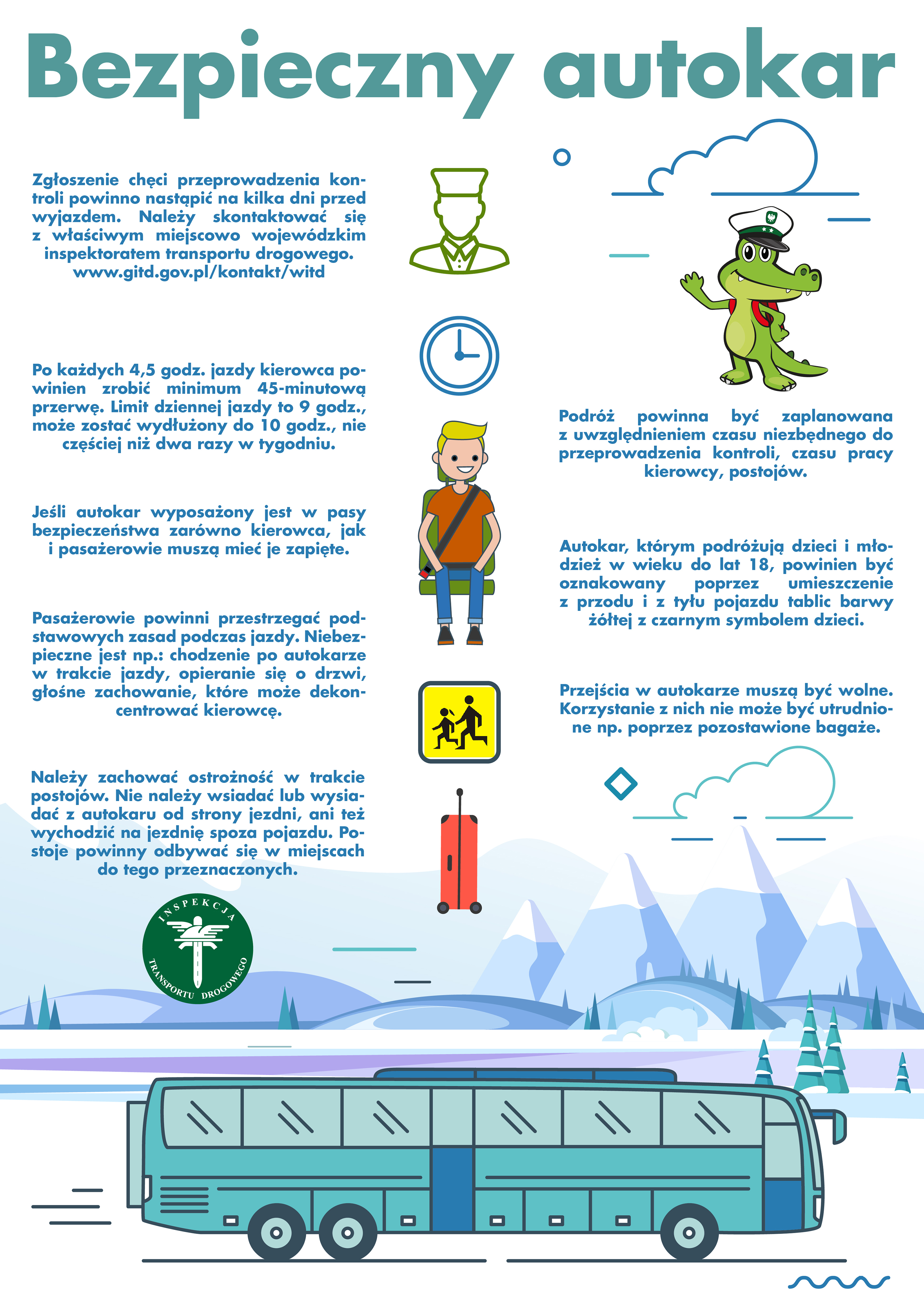 Rozpoczynają się ferie zimowe, a wraz z nimi wzmożony ruch autokarowy związany z wyjazdami dzieci i młodzieży na zimowy wypoczynek. Nad bezpieczeństwem najmłodszych podróżnych czuwać będą między innymi inspektorzy Inspekcji Transportu Drogowego, którzy rozpoczynają ogólnopolskie działania kontrolne pod hasłem „Bezpieczny Autokar - ferie 2026”. Kontrole autokarów mają zapewnić bezpieczny dojazd na zimowiska, obozy i wycieczki, w okresie zwiększonego natężenia ruchu drogowego i trudnych, zimowych warunków atmosferycznych.