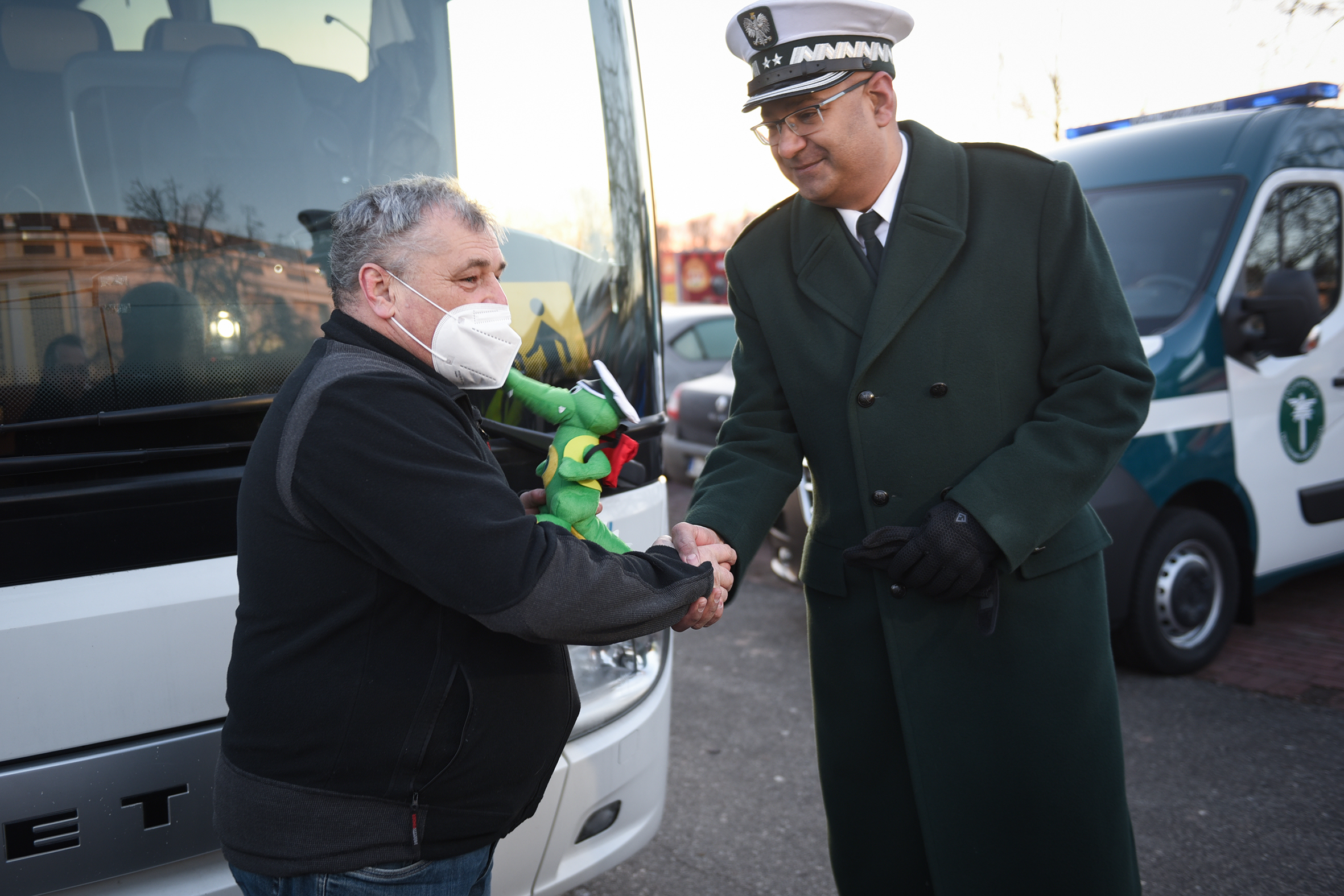 W trakcie prowadzonych czynności kontrolnych zwracamy szczególną uwagę na stan techniczny autokaru, układy które mają bezpośredni wpływ na bezpieczeństwo podróżnych, jak układ hamulcowy, kierowniczy, a także oświetlenie i stan ogumienia. W pierwszych godzinach dzisiejszej akcji skontrolowaliśmy 7 autokarów. Wszystkie były sprawne, a kierowcy trzeźwi. Część kierowców, przed wyjazdem w trasę, przyjechała specjalnie do punktu kontrolnego, aby inspektorzy sprawdzili stan pojazdu lub też o przeprowadzenie kontroli prosili organizatorzy zimowych wyjazdów – mówił Zbigniew Kapciak z-ca Mazowieckiego Wojewódzkiego Inspektora Transportu Drogowego.
