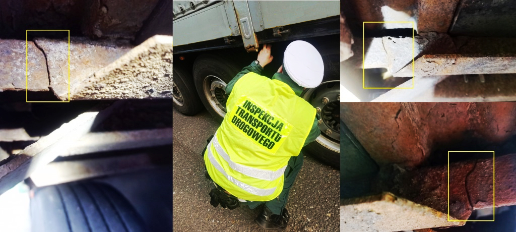 Pęknięcia w konstrukcji naczepy stwierdzili inspektorzy lubuskiej Inspekcji Transportu Drogowego. Niesprawny pojazd wycofano z ruchu. Za usterki techniczne, uznane za niebezpieczne, odpowie przewoźnik.