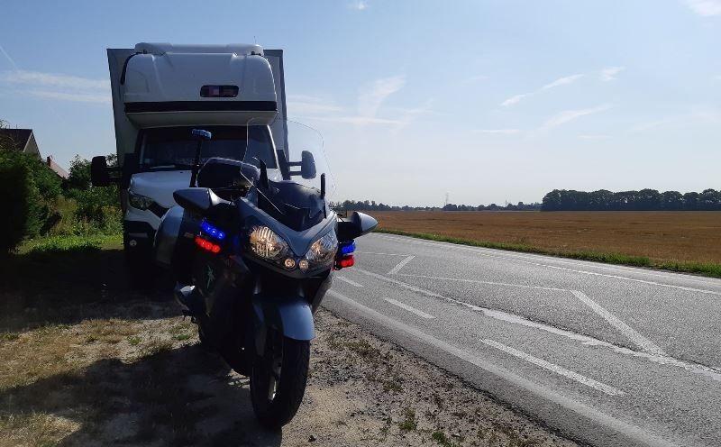 Przechylony na jedną stronę samochód dostawczy zatrzymał patrol motocyklowy dolnośląskiej Inspekcji Transportu Drogowego. Ładunek nie był w ogóle zabezpieczony i przemieścił się podczas jazdy. Okazało się również, że auto z towarem ważyło o 1,5 tony za dużo.