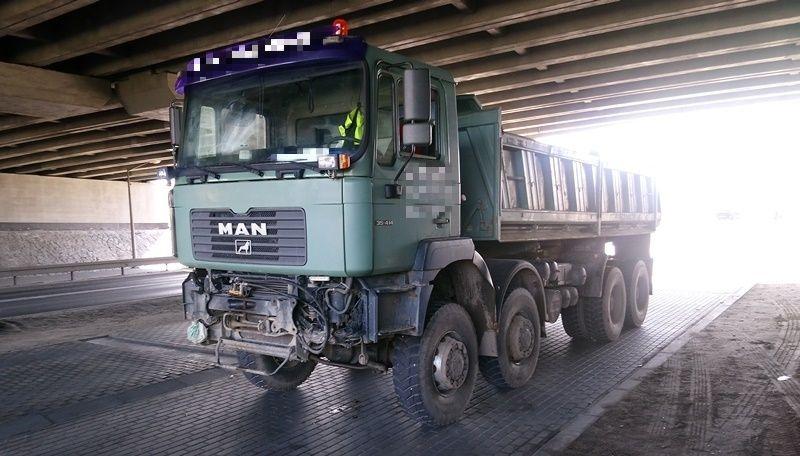 Brak przedniego zderzaka kierowca tłumaczył tym, że pojazd jest używany jako pług śnieżny. Jednak w okazanym dowodzie rejestracyjnym ciężarówki nie było wpisu informującego o przeznaczeniu pojazdu do zimowego utrzymania dróg.
