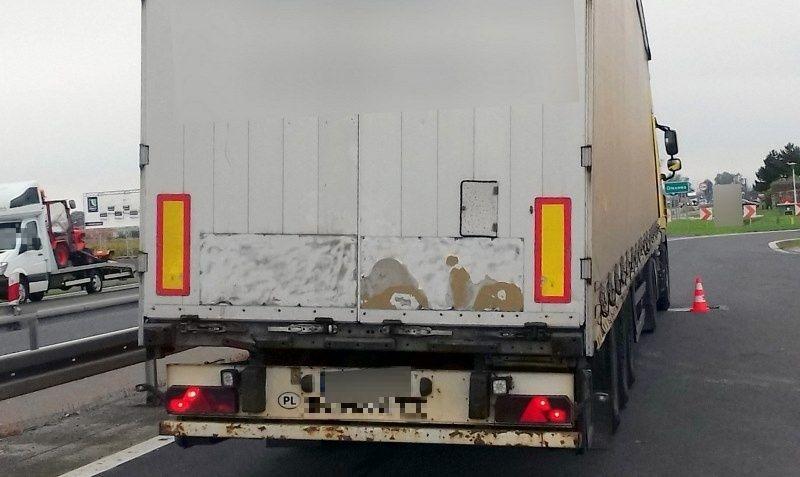 Inspektorzy zważyli ciągnik siodłowy z naczepą. Zamiast dopuszczalnych 40 ton zespół pojazdów ważył 50,5 tony. Przekroczenie DMC spowodowało również przekroczenie dopuszczalnego nacisku potrójnej osi nienapędowej naczepy o 9 ton.