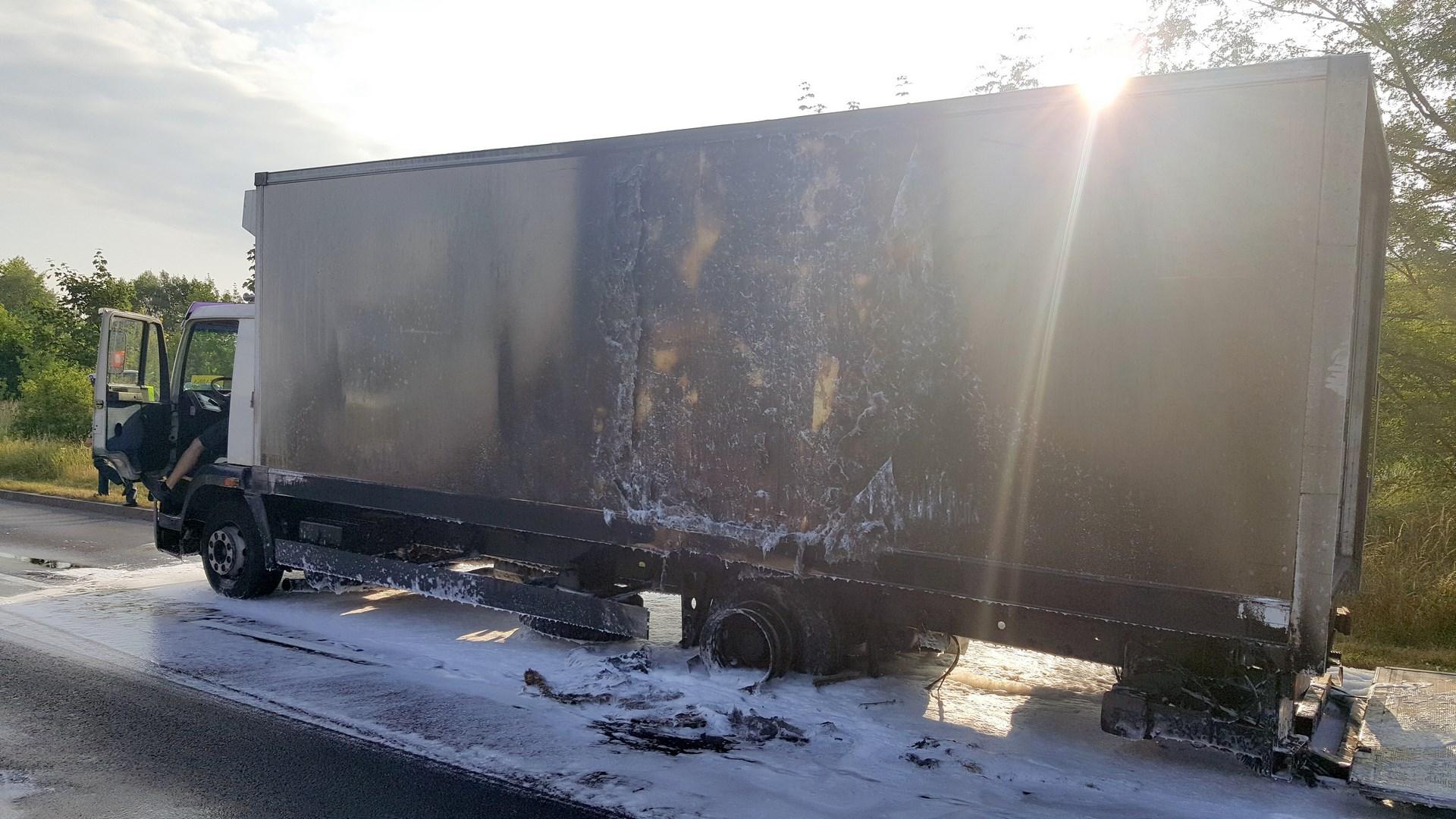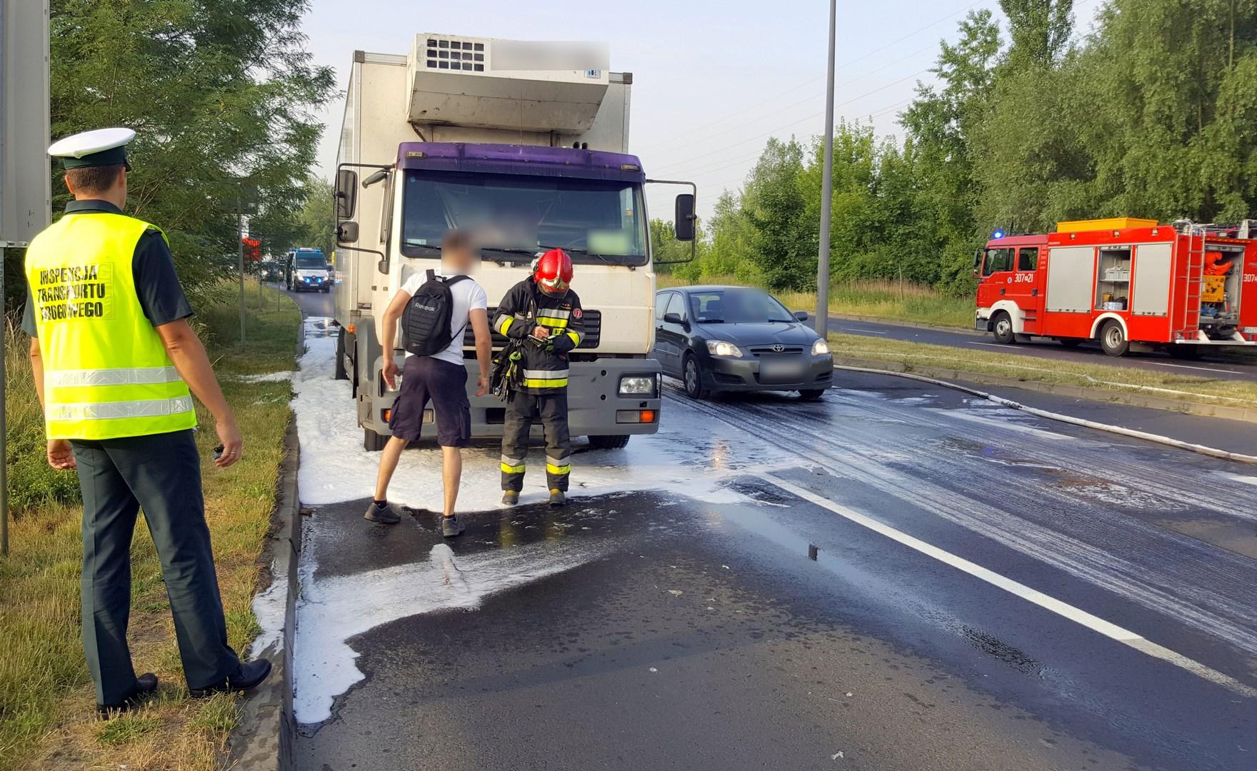Ciężarówka w ogniu. Inspektorzy pomogli