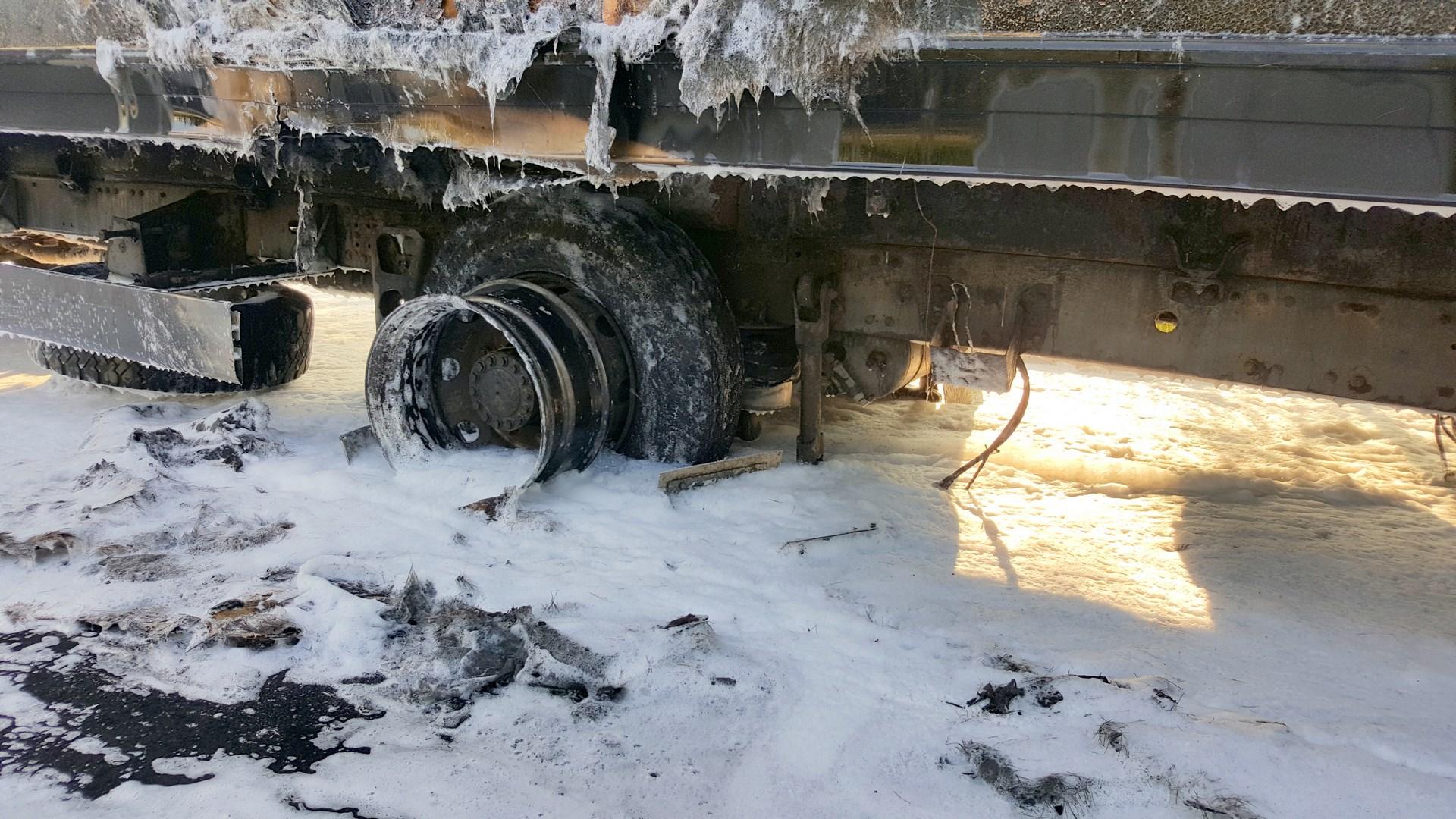 Chwilę później na miejsce dotarły trzy zastępy straży pożarnej i radiowóz policji, którym przekazano dalsze czynności zabezpieczające miejsce pożaru. Z rozmowy z kierowcą wynikało, że powodem pojawienia się płomieni w aucie było przegrzanie drugiej osi lub koła pojazdu. Inspektorzy ustalili, że doszło do zapłonu, a następnie wystrzału opony, od której zaczęła płonąć ciężarówka. Na szczęście nikt nie ucierpiał w wyniku tego zdarzenia.