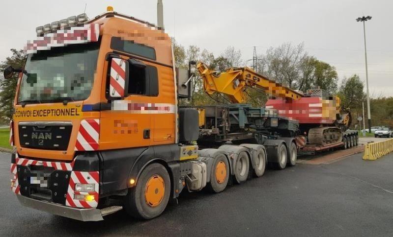 Blisko 105 ton zamiast dopuszczalnych 40 ton ważyła ciężarówka przewożąca maszynę budowlaną. Pojazd zatrzymany do kontroli przez patrol łódzkiej Inspekcji Transportu Drogowego był też za długi i za szeroki. Przewoźnikowi grożą wysokie kary za ujawnione naruszenia przepisów transportowych.