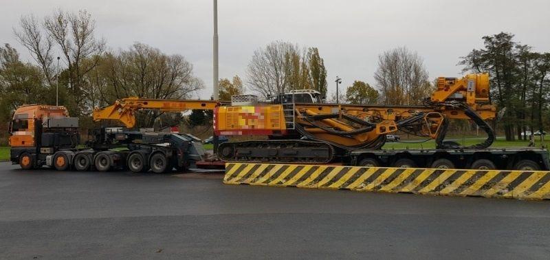 We wtorek (5 listopada) na terenie Łodzi inspektorzy ITD zatrzymali 11-osiową lawetę przewożącą tzw. palownicę, czyli maszynę budowlaną na gąsienicach.