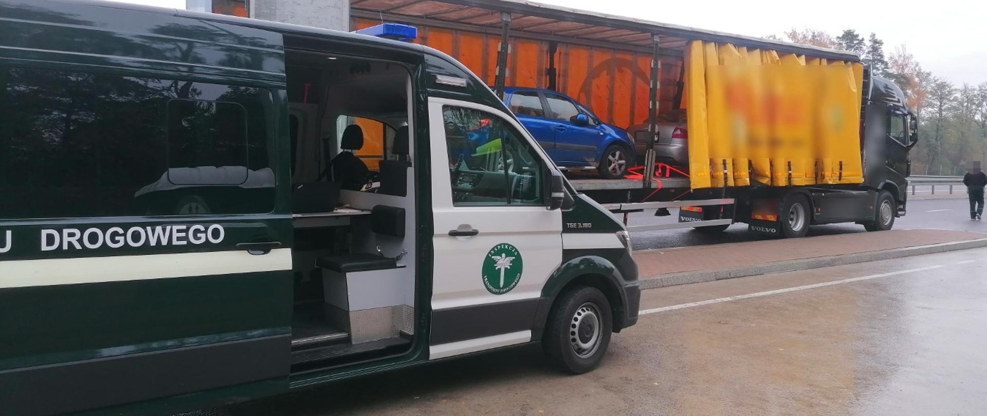 Kazachstański przewoźnik oraz jego kierowca skontrolowany przez podlaskich inspektorów Inspekcji Transportu Drogowego zignorowali przepisy obowiązujące w transporcie. Ciężarówka wraz z ładunkiem samochodów osobowych trafiła na parking strzeżony.
