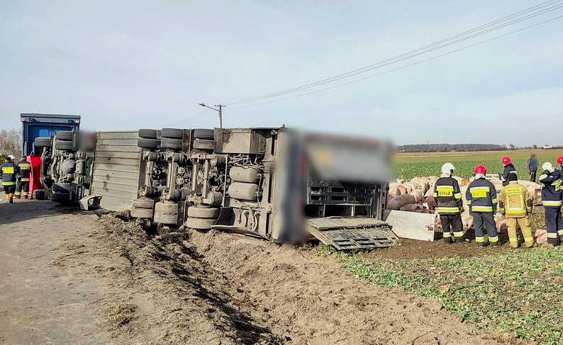 W czwartek (24 lutego) na drodze powiatowej w Gozdowie w pobliżu Wrześni, zespół pojazdów, którym przewożone były świnie, zjechał na pobocze, przewrócił się na bok i zatrzymał w przydrożnym rowie. Kierującemu nic się nie stało. Kilka sztuk trzody chlewnej padło na miejscu. W wyniku zdarzenia otworzyła się przestrzeń ładunkowa naczepy, przez co transportowane zwierzęta wybiegły na drogę.