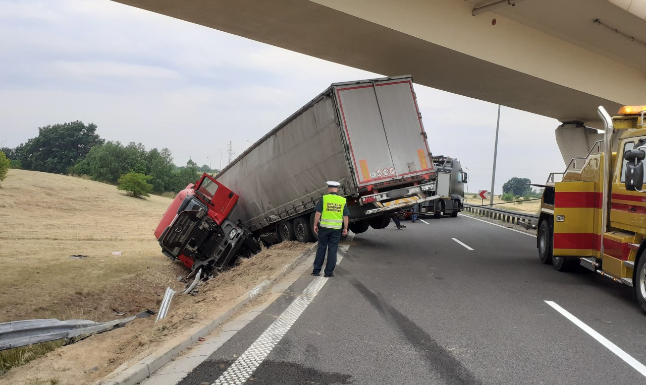 Zestaw ciężarowy zjechał z ekspresowej „trójki” i zatrzymał się w rowie. Do groźnie wyglądającego zdarzenia doszło w środę (30 czerwca), na wysokości węzła Klucz koło Szczecina. Kierowcę przewieziono do szpitala. Nie odniósł poważnych obrażeń. Wezwani funkcjonariusze zachodniopomorskiej Inspekcji Transportu Drogowego wyjęli tachograf z rozbitego samochodu ciężarowego i przekazali go Policji.