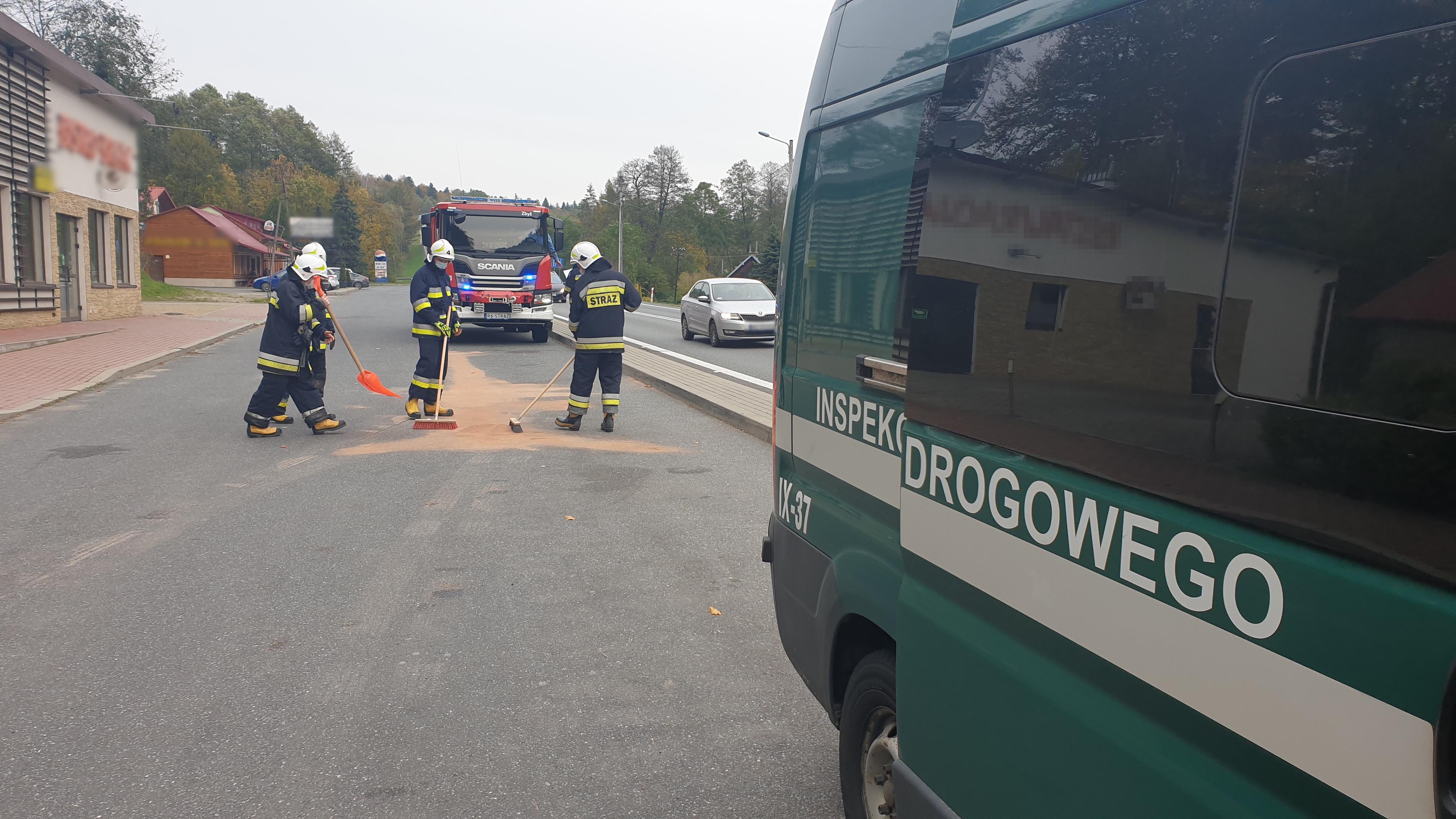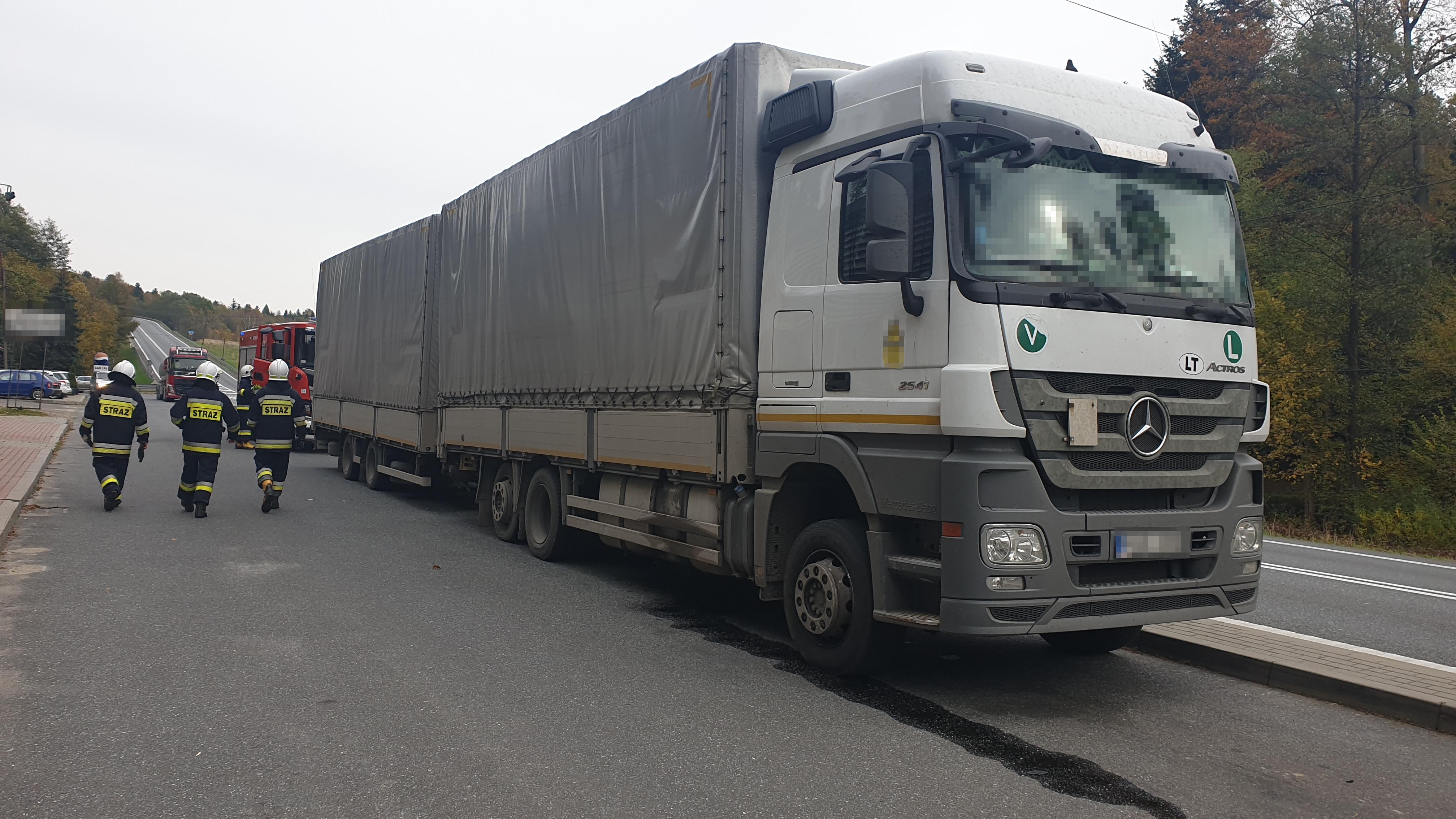 Ze zbiornika paliwa litewskiej ciężarówki wyciekał olej napędowy. Inspektorzy Inspekcji Transportu Drogowego z Rzeszowa wstrzymali jej dalszą jazdę, a na miejsce kontroli wezwali straż pożarną, która zneutralizowała wyciek.