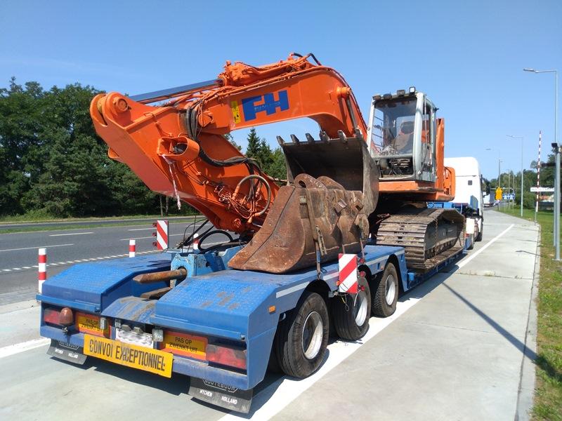 Przewoził koparkę bez zezwolenia i niewłaściwym pojazdem. Ze względu na duże przeciążenia, ciężarówkę, która z ładunkiem ważyła ponad 52 tony, kujawsko-pomorscy inspektorzy ITD skierowali na parking strzeżony.