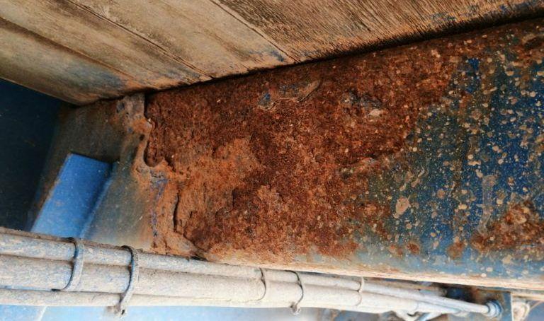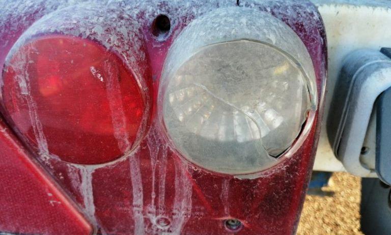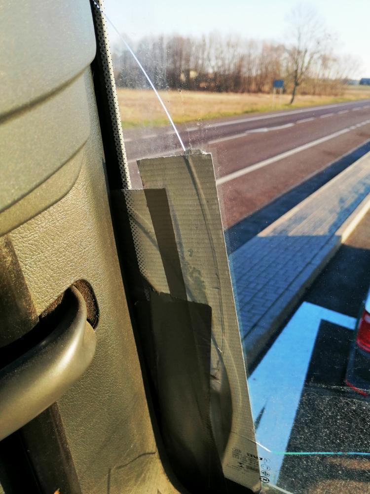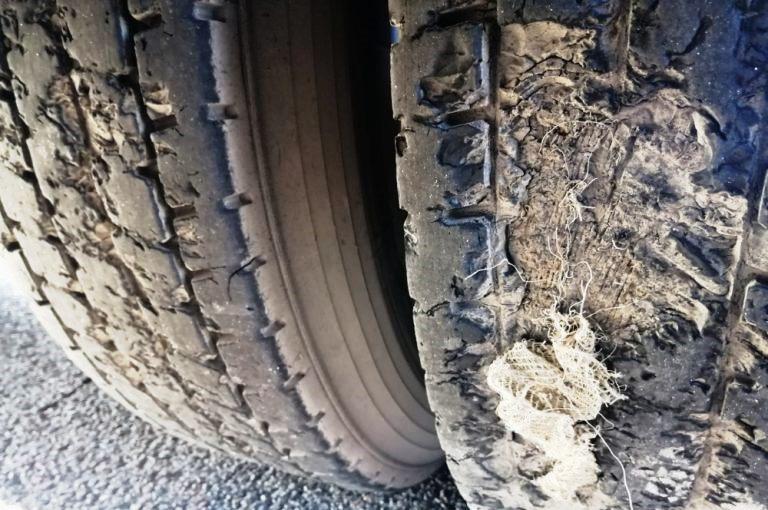 W trakcie kontroli stanu technicznego pojazdów stwierdzono szereg poważnych usterek, które zagrażały bezpieczeństwu w ruchu drogowym. Pękniętą szybę ciężarówki kierowca "zabezpieczył"... taśmą klejącą. Większość opon była uszkodzona i mocno zużyta, m.in. wystawały z nich druty. Ponadto opony na tej samej osi miały różną rzeźbę bieżnika, a z siłowników hydraulicznych zawieszenia wyciekał olej. Uszkodzone były także elementy oświetlenia. Sama konstrukcja naczepy była miejscami nadmiernie skorodowana. Inspektorzy ITD zwrócili również uwagę na brak właściwego zabezpieczenia przewożonych płyt.