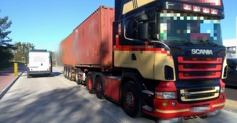 Zestaw z ładunkiem ważył 48,4 tony zamiast dopuszczalnych 40 ton. Za duży tonaż spowodował również przekroczenie nacisku potrójnej grupy osi naczepy na drogę o 2,85 tony. W maju ten przewoźnik był już kontrolowany i wówczas również stwierdzono przekroczenie DMC zespołu pojazdu w trakcie transportu dwóch kontenerów morskich.