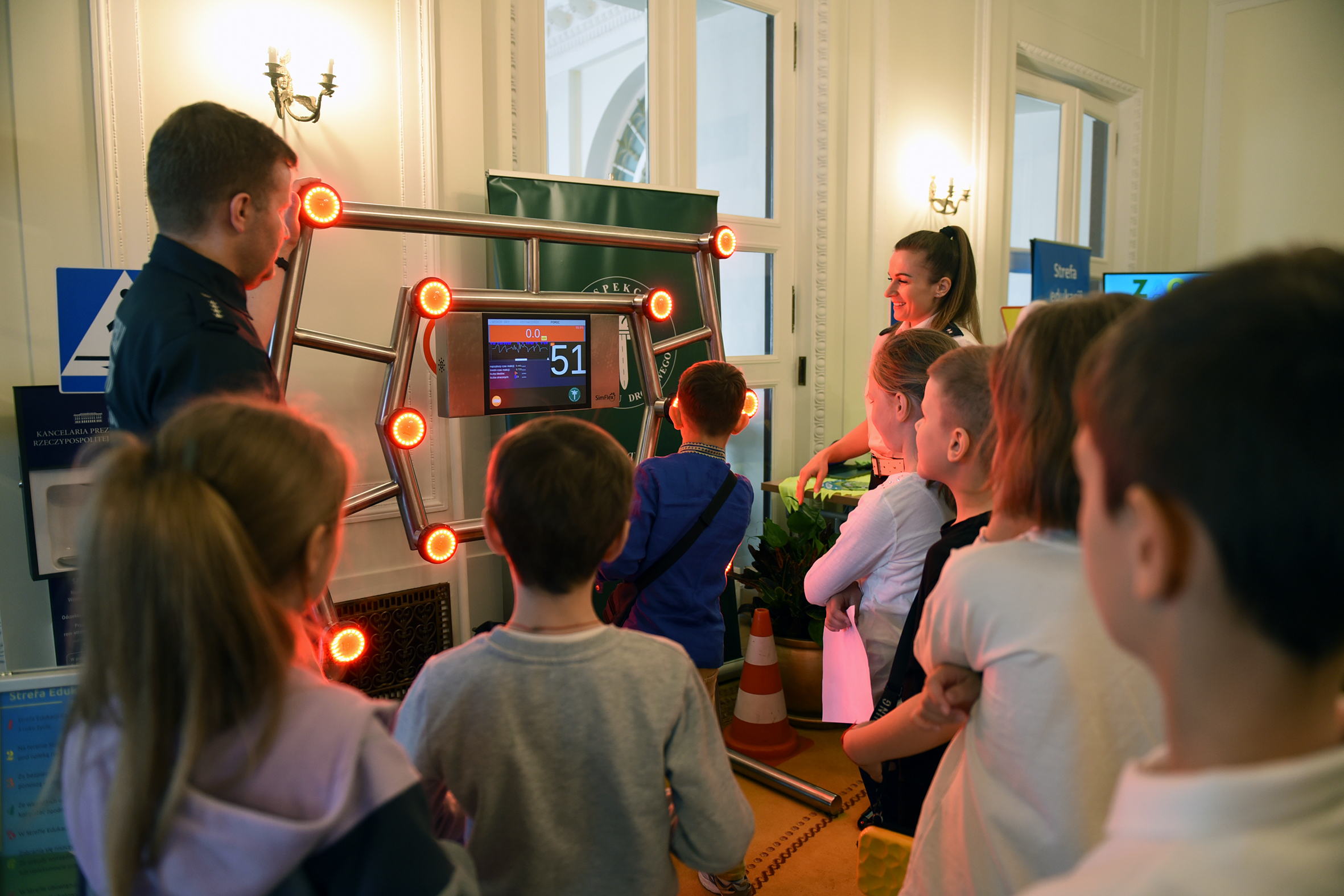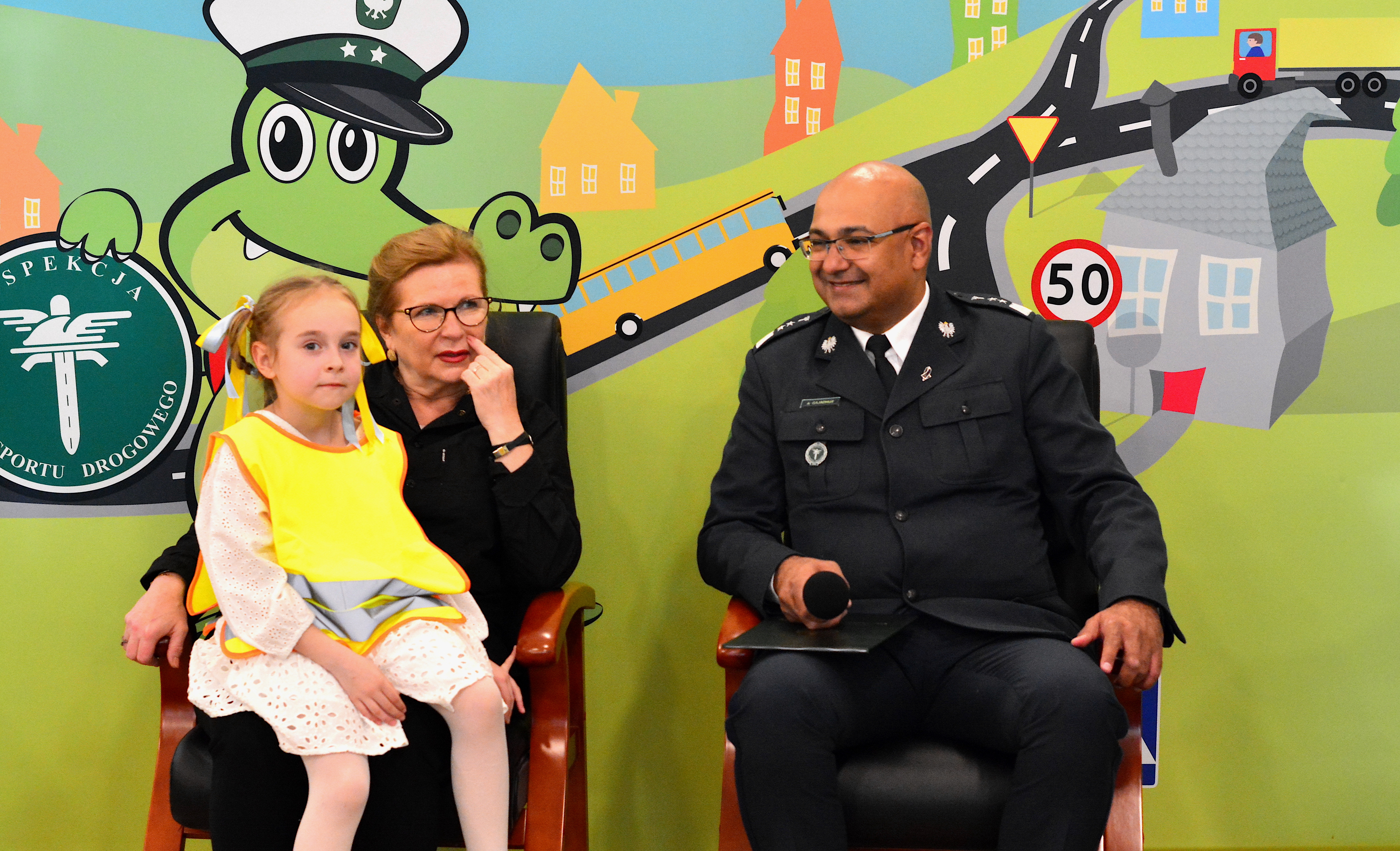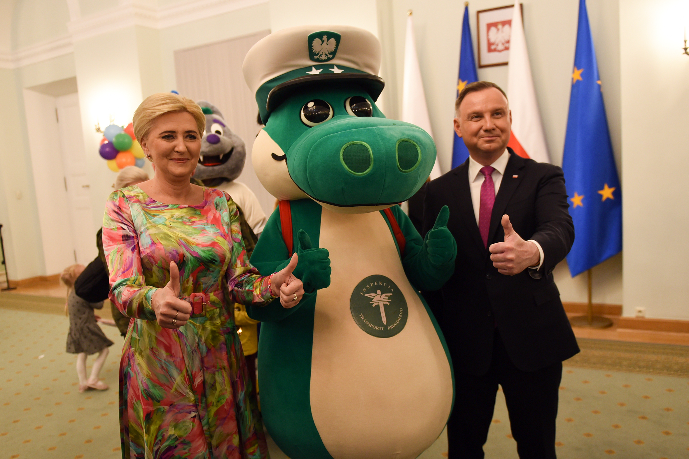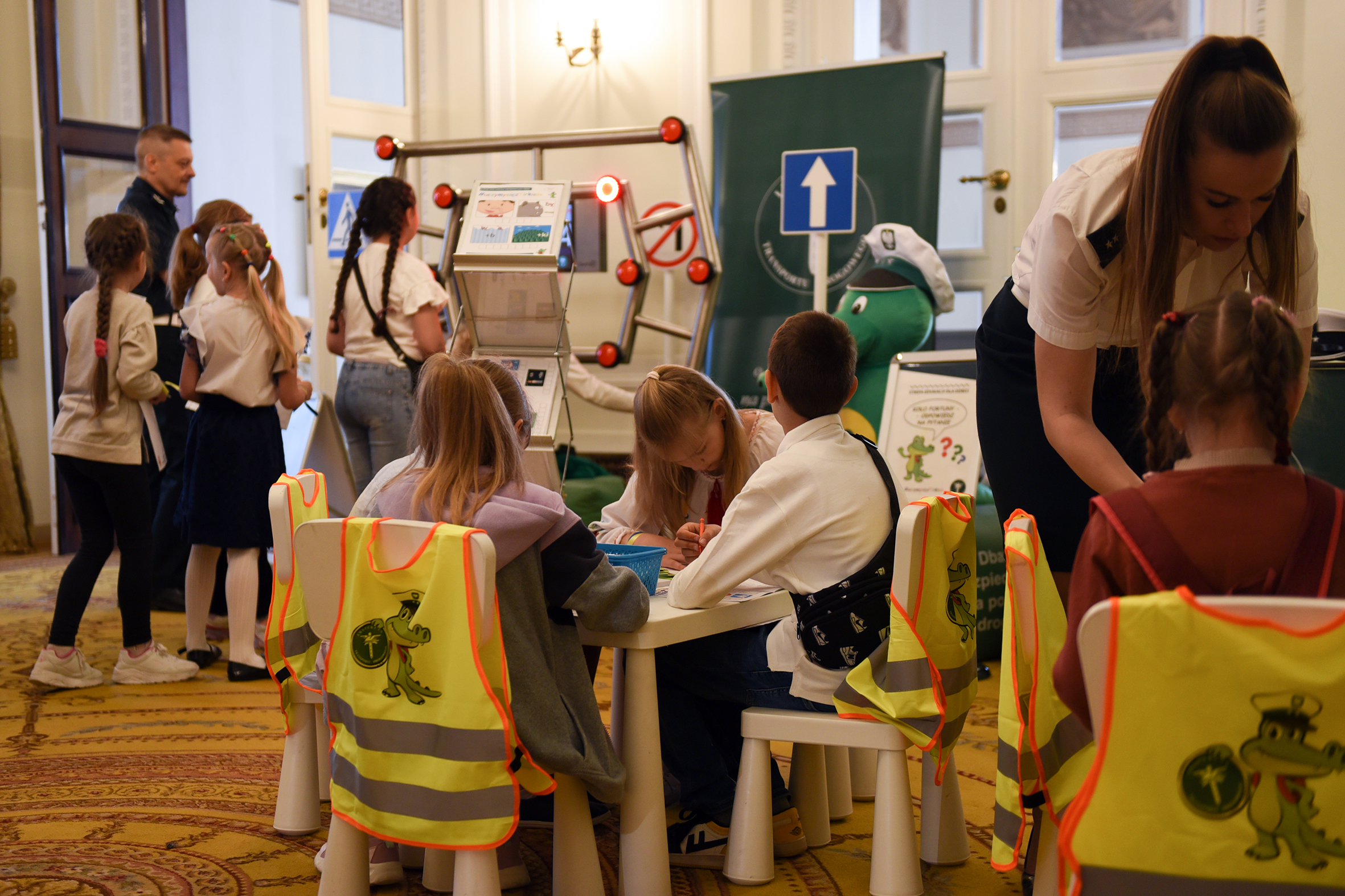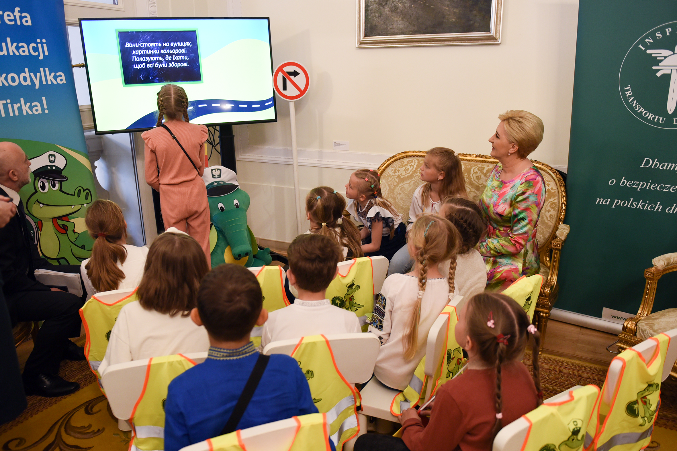 W Pałacu Prezydenckim nie zabrakło też stoiska Inspekcji Transportu Drogowego, w którym Pierwsza Dama wspólnie z inspektorami, rozmawiała z dziećmi o najważniejszych zasadach bezpieczeństwa ruchu drogowego. W spotkaniu uczestniczyły również dzieci z Ukrainy, dla których Inspekcja, w języku ukraińskim przygotowała filmy animowane, zagadki i krzyżówki. Atrakcją okazał się m.in. trenażer czasu reakcji. Sporo pozytywnych emocji wzbudził też Krokodylek Tirek – maskotka ITD, z którą nie tylko najmłodsi robili pamiątkowe zdjęcia, ale również Para Prezydencka.