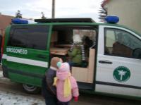 Trwają ferie zimowe. Dzieci i młodzież wyjeżdżają na wycieczki, kolonie, itd. Inspektorzy Inspekcji Transportu Drogowego w Szczecinie prowadzą wzmożone kontrole autokarów w ramach akcji? Bezpieczny autokar - ferie zimowe 2009? Celem działań jest zwiększenie bezpieczeństwa na polskich drogach poprzez eliminację naruszeń w transporcie drogowym oraz zwiększenie świadomości użytkowników dróg w zakresie konieczności przestrzegania przepisów ruchu drogowego. W celu wdrażania zasad bezpieczeństwa w ruchu już u najmłodszych, inspektorzy z Wojewódzkiego Inspektoratu Transportu Drogowego w Szczecinie z funkcjonariuszami Policji i Straży Granicznej uczestniczyli w spotkaniach z dziećmi ze Szkoły Podstawowej w Pyrzycach i z Przedszkola w Skarbimierzycach. Spotkania odbyły się w miejscowościach, przez które przebiegają drogi tranzytowe o dużym natężeniu ruchu. Głównym celem wizyty było omówienie zasad bezpieczeństwa w ruchu pieszych a przy okazji dzieciom zostały rozdane odblaski, ulotki oraz plakaty informacyjne. Zaprezentowano umundurowanie, pojazdy i sprzęt wykorzystywany w codziennej służbie oraz omówiono specyfikę pracy i główne zadania każdej ze służb, której przedstawiciele brali udział w spotkaniu. Największym zainteresowaniem cieszyły się pojazdy służbowe, a w szczególności sygnały świetlne i dźwiękowe oraz wyszkolony w zakresie poszukiwania osób? czworonożny Strażnik Graniczny? owczarek niemiecki.