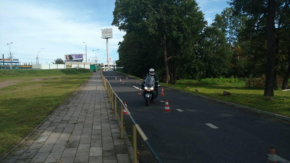 - umiejętność jazdy technicznej motocyklem służbowym (pokonanie wyznaczonej trasy z wykorzystaniem jazy na wzniesieniu, pokonanie pochylni i toru z przeszkodami ustawionymi z pachołków),