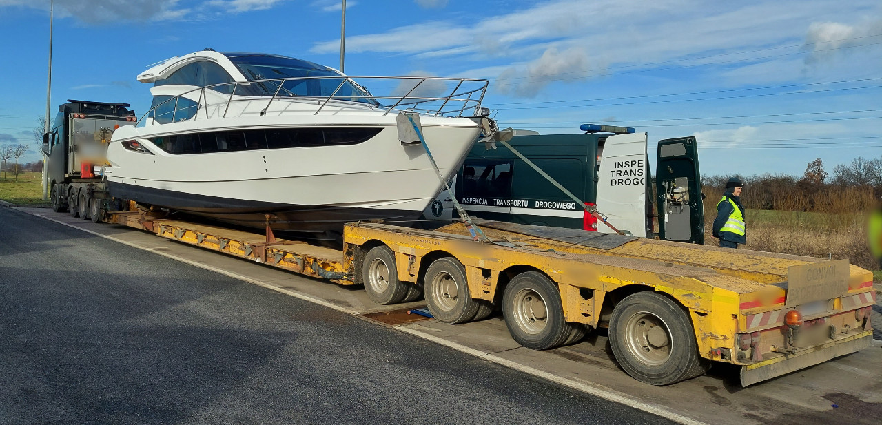 W poniedziałek (13 lutego), na drodze wojewódzkiej nr 501 koło Gdańska, patrol ITD zatrzymał do kontroli ciągnik siodłowy z naczepą niskopodwoziową. Zestawem przystosowanym do transportu gabarytów przewożono duży jacht ze stoczni w Straszynie do miejsca wodowania w Sobieszewie. Z uwagi na wymiary ciężarówki z ładunkiem, inspektorzy postanowili sprawdzić, czy nienormatywny transport odbywa się zgodnie z przepisami. Kierowca okazał zezwolenie kat. IV na przejazd pojazdu nienormatywnego, lecz okazało się ono niewystarczające. Zestaw z ładunkiem ważył 55,55 t i miał 26,23 m długości, 4,06 m szerokości oraz 4,11 m wysokości. Okazane zezwolenie nie mogło zostać uznane z powodu zbyt dużej długości i szerokości zespołu pojazdów z ładunkiem.