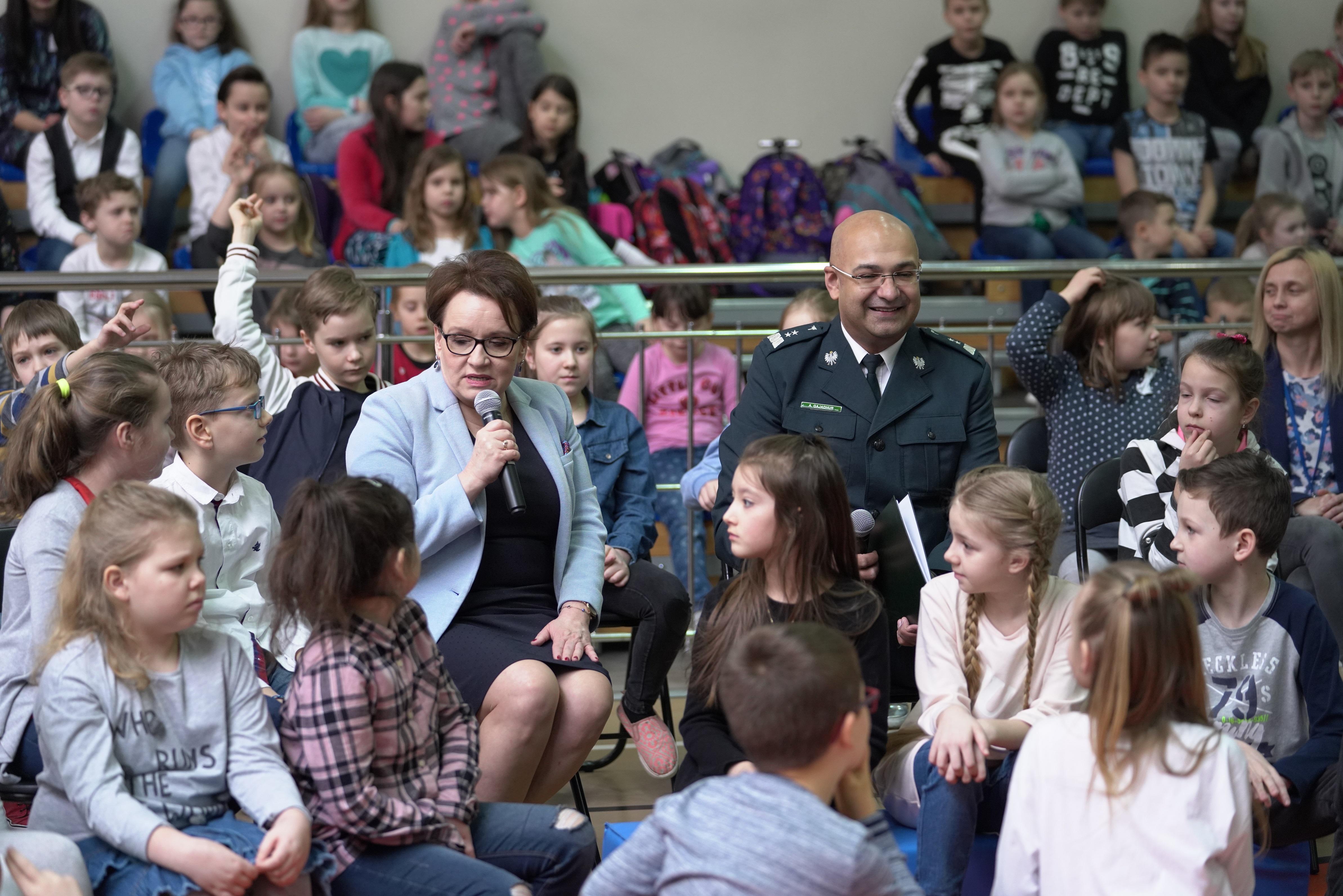 -"Bardzo się cieszę, że mogę uczestniczyć w lekcji bezpieczeństwa ruchu drogowego organizowanej przez Główny Inspektorat Transportu Drogowego. Dzisiejsza lekcja jest uzupełnieniem tego, co na co dzień robią nauczyciele, dlatego że wiedza w zakresie bezpieczeństwa ruchu drogowego jest zapisana na każdym etapie edukacji" - tymi słowami Minister Edukacji Narodowej Anna Zalewska rozpoczęła spotkanie z uczniami szkoły.