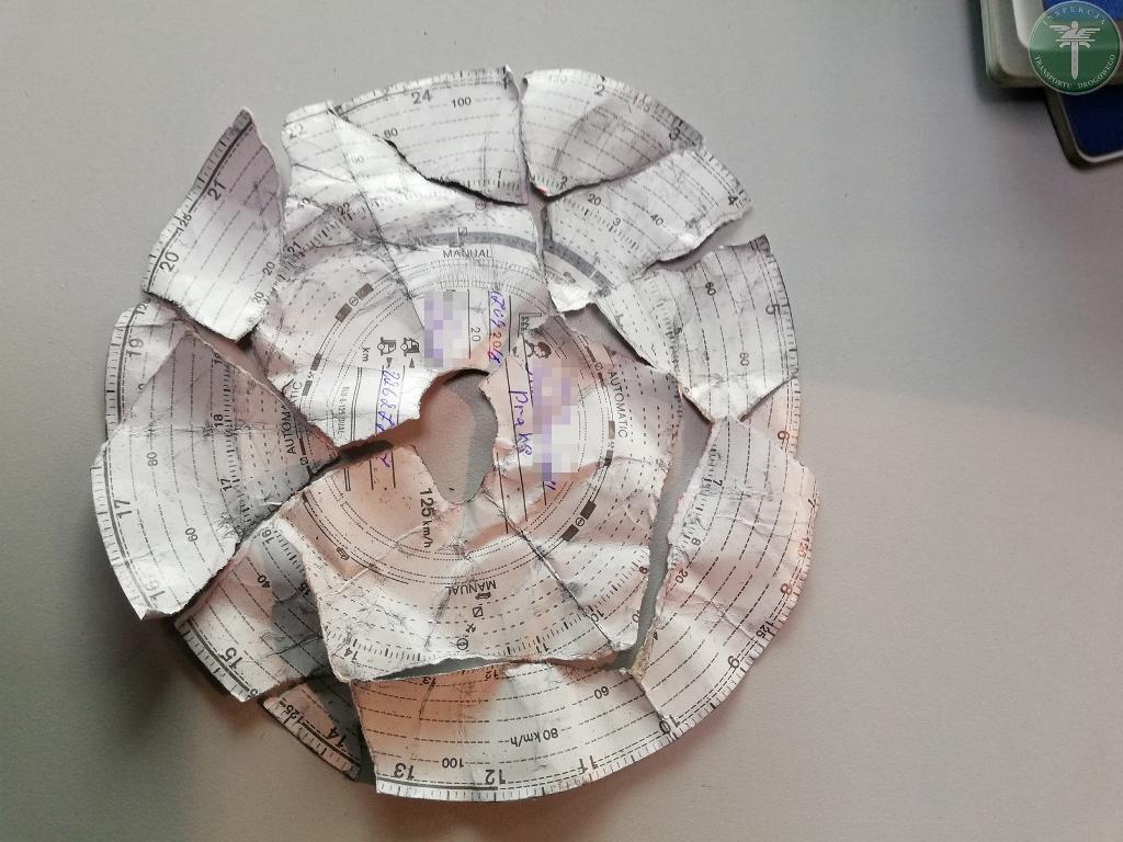 Wezwani na miejsce kolizji inspektorzy z wodzisławskiego oddziału Wojewódzkiego Inspektoratu Transportu Drogowego w Katowicach dokonali szczegółowych oględzin tachografu. Ustalili, że tachograf zainstalowany w autobusie nie został uszkodzony w wyniku wypadku, co początkowo sugerowała dwuosobowa załoga ukraińskich kierowców. Podczas rozmowy z szoferami inspektorom udało się wyjaśnić okoliczności uszkodzenia tachografu i zagubienia wykresówek. Okazało się, że w obawie przed konsekwencjami jeden z nich uszkodził szufladę tachografu i podarł wykresówki, a następnie wrzucił je pomiędzy elementy barier autostradowych nieopodal miejsca zdarzenia. Załoga kierowców wskazała miejsce ich ukrycia. Na podstawie odtworzenia dokumentów inspektorzy stwierdzili naruszenia, m.in. skrócenie odpoczynku o 7 godz. i 30 min.