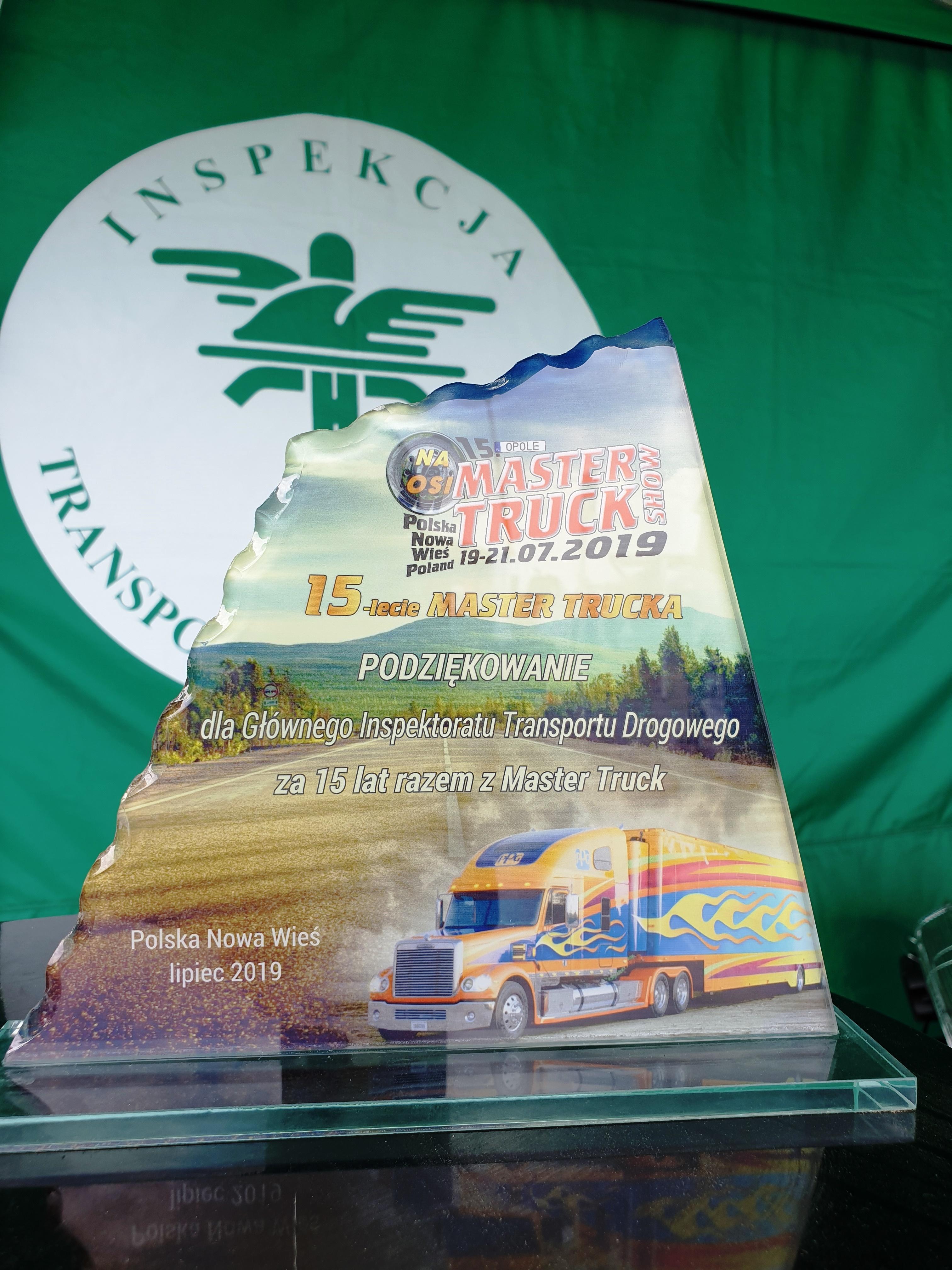 Właśnie za wieloletnie wsparcie Master Truck Show i aktywne uczestnictwo w wydarzeniu, Inspekcja Transportu Drogowego została wyróżniona przez organizatorów zlotu specjalną statuetką.