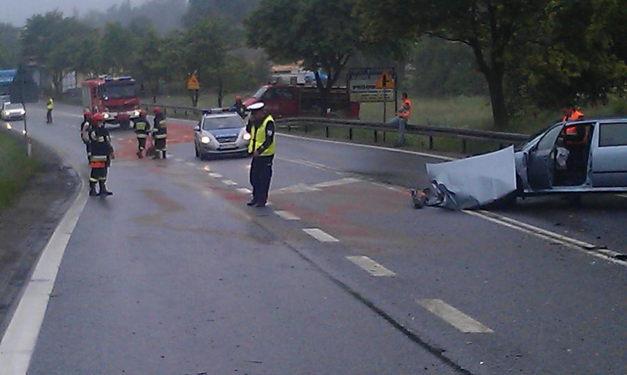 W czasie porannego szczytu 6 czerwca na drodze krajowej nr 8 w Boguszynie doszło do groźnego zderzenia dwóch samochodów - osobowego z ciężarowym. Jako pierwsi na miejscu wypadku pojawili się pełniący służbę inspektorzy z wydziału ds. Automatycznego Nadzoru nad Ruchem Drogowym GITD z Delegatury wrocławskiej, którzy udzielili poszkodowanym pierwszej pomocy, zabezpieczyli miejsce kolizji a także kierowali ruchem do czasu przyjazdu Policji. W akcji zabezpieczania wyciekającego paliwa wziął udział także zastęp Straży Pożarnej.