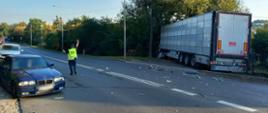 W piątek (22 września), na Alei Niepodległości w Starachowicach, ciągnik siodłowy z naczepą uderzył w tył samochodu osobowego. Następnie zestaw zjechał z drogi i uderzył w drzewo. Choć uszkodzenia pojazdów były znaczne, to nikt nie został ranny. Na miejscu kolizji pierwsi pojawili się funkcjonariusze Inspekcji Transportu Drogowego. Akurat jechali ze swojej jednostki do wyznaczonego miejsca, gdzie mieli prowadzić kontrole pojazdów i kierowców.