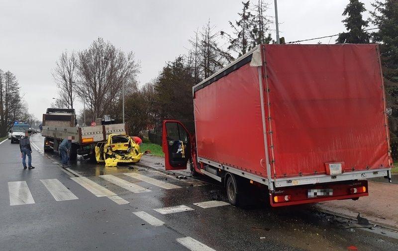 Do zderzenia samochodu dostawczego z osobowym i ciężarowym doszło dziś (28 marca) ok. godz. 11 na 102 kilometrze drogi krajowej numer 8 w miejscowości Cieszyce pod Wrocławiem. Do radiowozu ITD stojącego kilometr od miejsca wypadku podjechał jeden z kierowców i poinformował załogę patrolu o zdarzeniu drogowym. Inspektorzy natychmiast pojechali we wskazane miejsce. Okazało się, że w wypadku uczestniczyły trzy pojazdy. Osoby poszkodowane jechały samochodem osobowym. Kierowcy tego auta udało się wydostać z wraku pojazdu o własnych siłach. Natomiast ranną pasażerkę musieli uwolnić strażacy za pomocą specjalistycznego sprzętu hydraulicznego.
