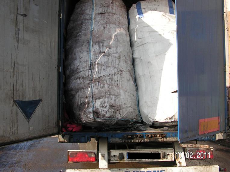 W trakcie oględzin ładowni stwierdzono, że pojazdem są przewożone zużyte akumulatory w ilości 22 ton. Podczas oględzin przestrzeni ładunkowej zauważono, że z ładowni wycieka bliżej nieokreślona ciecz. Kontrolujący powzięli uzasadnione podejrzenie, że jest to kwas z akumulatorów i wezwali na miejsce straż pożarną z Bełchatowa. Po przybyciu na miejsce strażacy przeprowadzili badanie, które wykazało, że złom akumulatorowy jest przewożony z zawartością kwasu siarkowego. Po uzyskaniu powyższej informacji od strażaków przewóz zaklasyfikowano jako transport towaru niebezpiecznego UN2794, który powinien odpowiadać wymogom stawianym przez umowę ADR. Towar transportowany był z pominięciem wszelkich zasad obowiązujących przy transporcie towarów niebezpiecznych. W związku z powyższym na przewoźnika nałożono karę w drodze decyzji administracyjnej w kwocie 16 200 zł ograniczoną na mocy ustawy do 15 000 złotych. Zakazano przewoźnikowi dalszego transportu towarów niebezpiecznych do momentu usunięcia stwierdzonych nieprawidłowości i zapłaty kary pieniężnej.