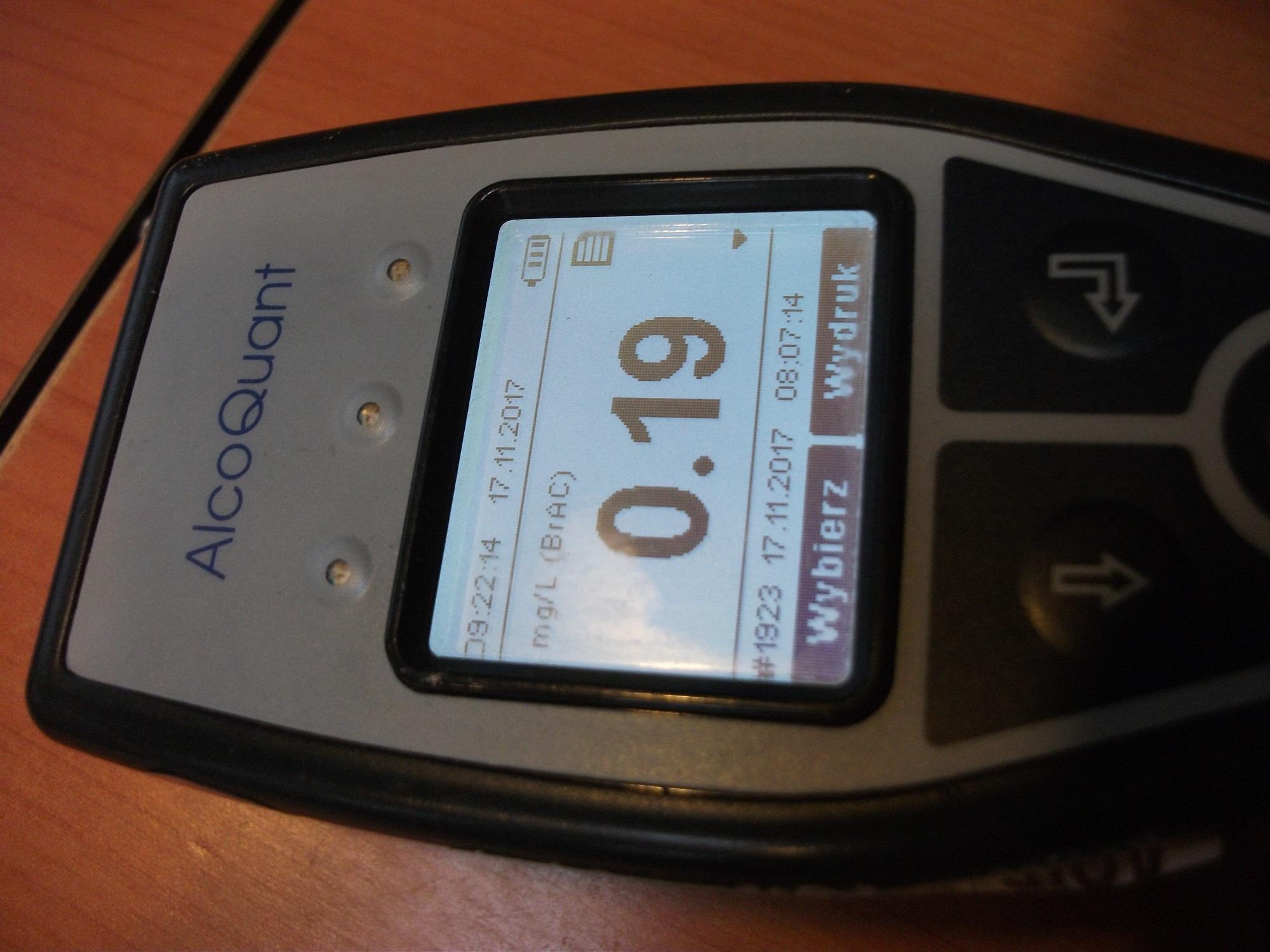 Obaj kierowcy od samego początku kontroli byli wyraźnie poddenerwowani. Przyczyna takiego ich zachowania stała się jasna, gdy inspektorzy ITD przeprowadzili badanie na zawartość alkoholu w wydychanym powietrzu. Okazało się bowiem, że jeden z kierujących był pod wpływem alkoholu. Badanie wykazało zawartość 0,19 mg/l (0,38 promila) alkoholu w wydychanym powietrzu.