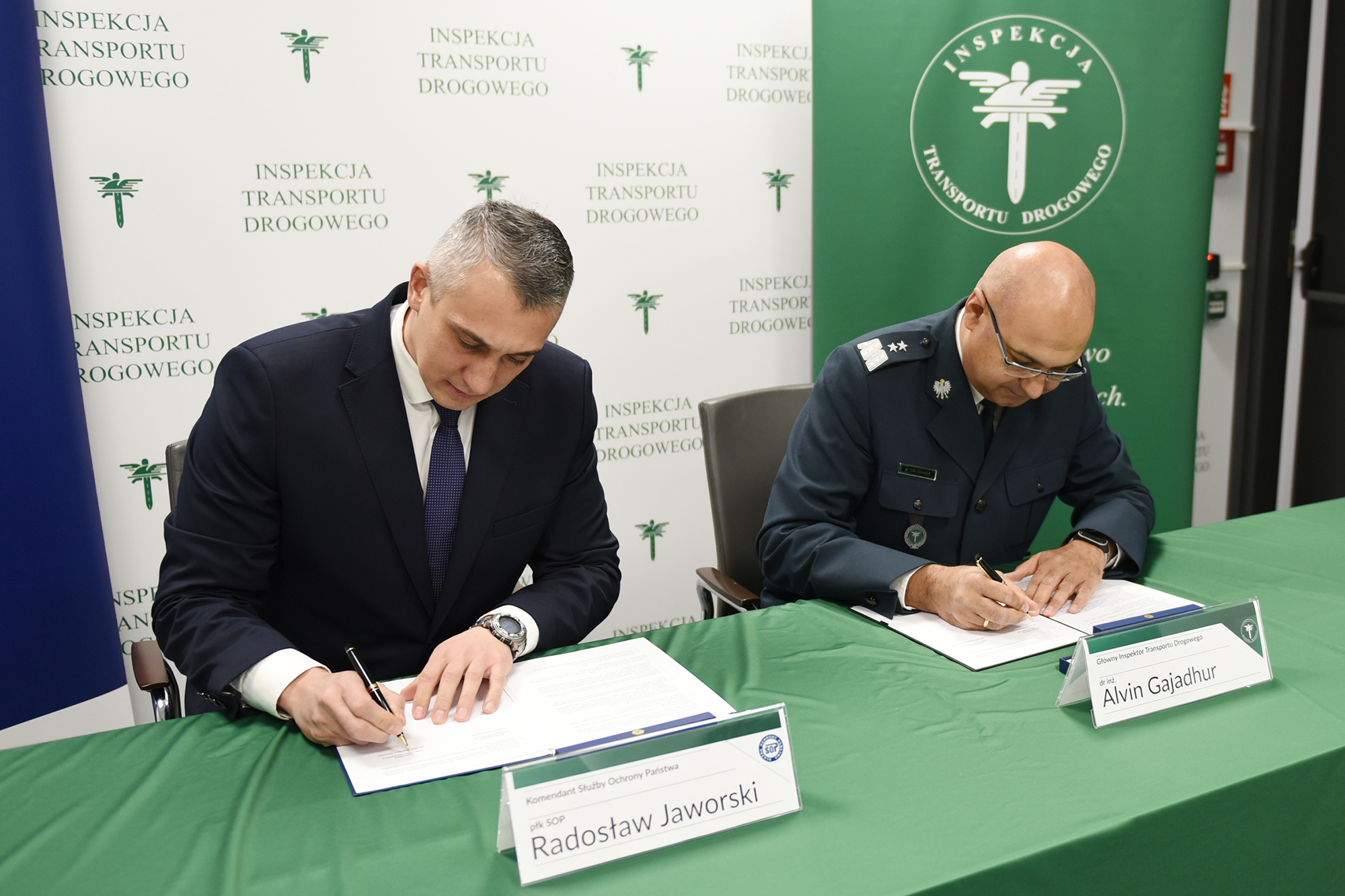 Dokument podpisali Główny Inspektor Transportu Drogowego Alvin Gajadhur i płk Radosław Jaworski, Komendant Służby Ochrony Państwa.