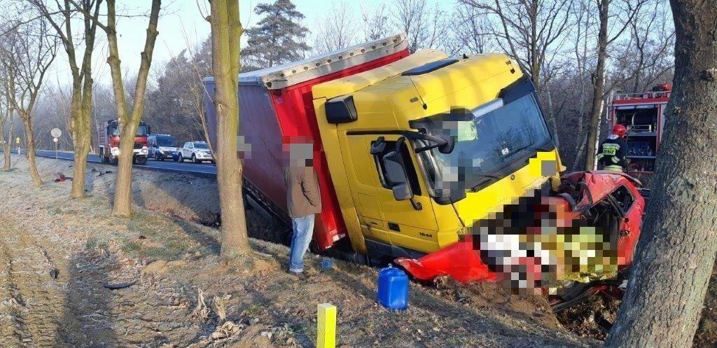 Do tragicznego wypadku doszło w piątek (24 stycznia) na odcinku drogi pomiędzy Kawicami i Mazurowicami w powiecie legnickim. Ze wstępnych ustaleń wynika, że osobówka zjechała na przeciwległy pas drogi krajowej nr 94 i uderzyła w nadjeżdżającą z naprzeciwka ciężarówkę. Kierowca i pasażer auta osobowego zginęli na miejscu. Kierowca pojazdu ciężarowego przeżył wypadek. Był trzeźwy.