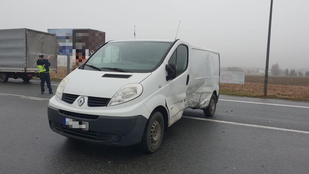 Kierujący samochodem dostawczym wymusił pierwszeństwo i zderzył się z prawidłowo jadącym samochodem osobowym. Do zdarzenia doszło na zjeździe z autostrady A4 w kierunku Opola.